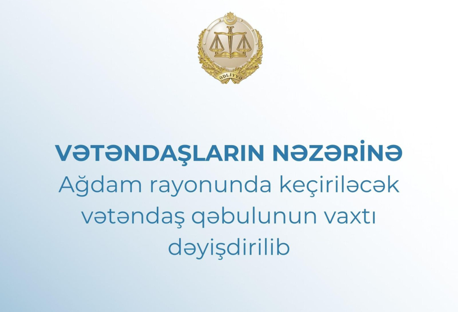 Ədliyyə nazirinin Ağdam rayonunda keçiriləcək vətəndaş qəbulunun vaxtı dəyişdirilib