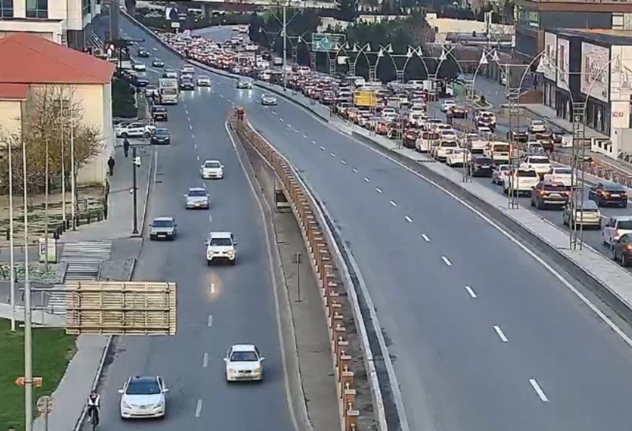 Bakının bir sıra yollarında nəqliyyatın hərəkətində sıxlıq yaranıb.