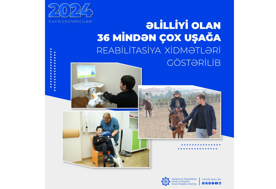 Əmək və Əhalinin Sosial Müdafiəsi Nazirliyinin tabeliyində Dövlət Tibbi-Sosial Ekspertiza və Reabilitasiya Agentliyinin uşaq reabilitasiya mərkəzləri tərəfindən bu ilin yanvar-noyabr aylarında əlilliyi olan 36,6 min uşağa reabilitasiya xidmətləri göstərilib.