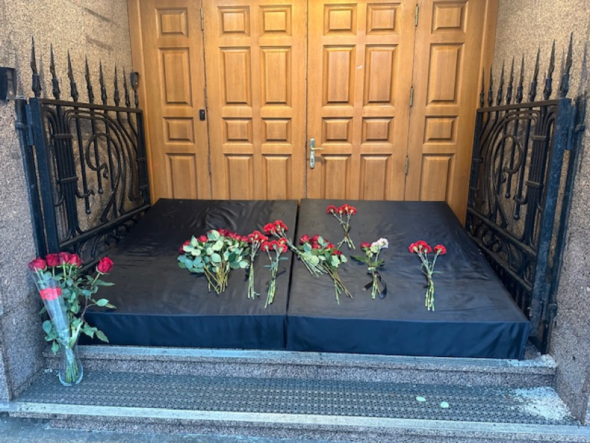 Moskva sakinləri Azərbaycanın Rusiyadakı səfirliyinin binasının önünə gül dəstələri düzürlər