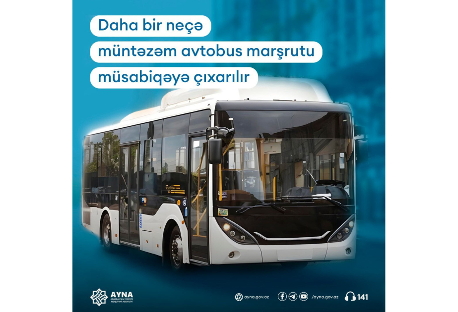 Azərbaycan Yerüstü Nəqliyyat Agentliyi (AYNA) sərnişindaşıma xidmətinin keyfiyyətinin artırılması ilə bağlı tədbirlər çərçivəsində paytaxtın 66 nömrəli şəhərdaxili, 122, 126, 162, 184 və 340 nömrəli şəhərətrafı avtobus marşrutlarını müsabiqəyə çıxarır.