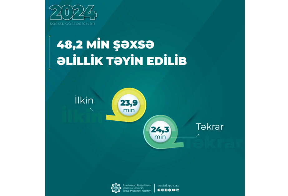 Nazirliyin İctimaiyyətlə əlaqələr şöbəsindən verilən məlumata görə, onlardan 23,9 mininə ilkin, 24,3 mininə isə təkrar əlillik təyinatı aparılıb.