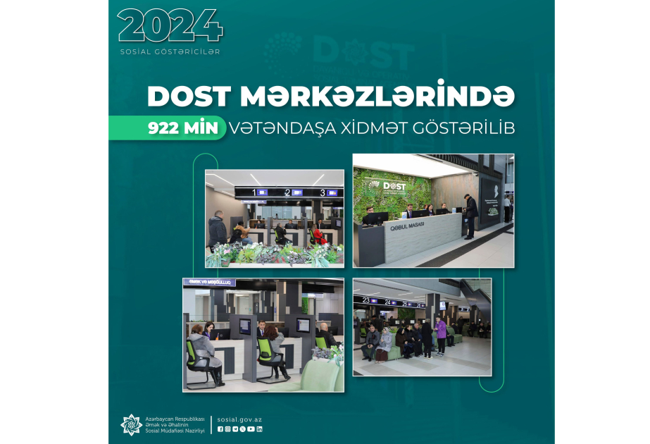 2024-cü ildə DOST mərkəzlərində 922 min vətəndaşa xidmət göstərilib.