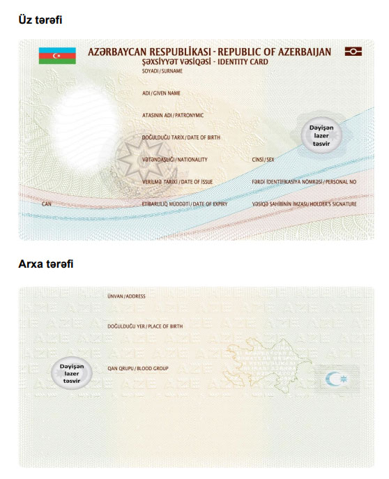 Yeni şəxsiyyət vəsiqələri aşağıdakı kimi olacaq: