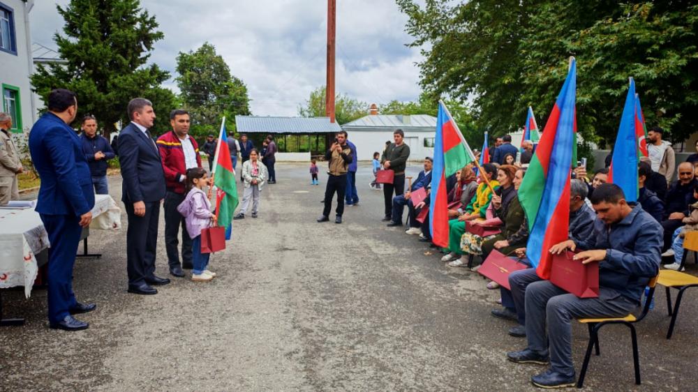 Sentyabrın 22-də növbəti köç karvanı ilə Ağdərə rayonunun Həsənriz kəndinə çatan ailələrə evlərinin açarları təqdim olunub.