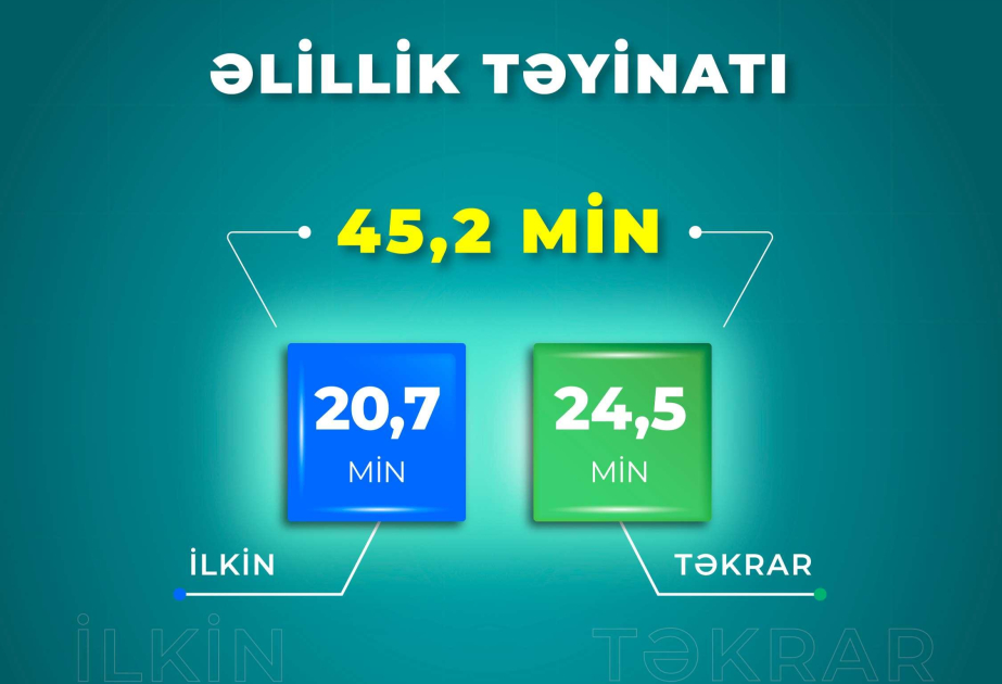 Nazirliyin İctimaiyyətlə əlaqələr şöbəsindən verilən məlumata görə, onlardan 20 min 700 nəfər ilkin, 24 min 500 nəfərə isə təkrar əlillik təyinatı aparılıb.