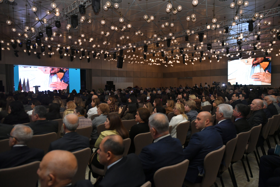 Rəsmi tədbirdən öncə “Gülüstan” sarayında təşkil olunan “Təhsil və irs” sərgisinə baxış keçirilib. Sərgidə universitetin zəngin tarixi irsi, keçdiyi inkişaf mərhələləri, elmi-pedaqoji nailiyyətləri və müasir inkişaf strategiyası təqdim olunub.
