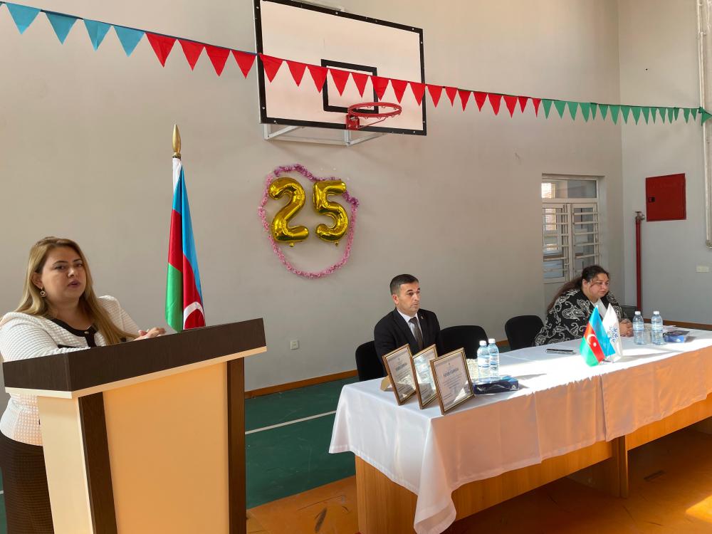 Tədbirdə Qaraçay qəsəbə tam orta məktəbin direktoru Fəridə Dostuyeva-Kərimli, partiya fəalı Səlimcan Rizmanov və Qaraçay qəsəbə ərazi partiya təşkilatının sədri Bariz Allahverdiyev çıxış edərək Ümummilli Lider Heydər Əliyevin memarı olduğu Yeni Azərbaycan Partiyasının ölkəmizin əldə etdiyi bütün nailiyyətlərdə, uğurlarda, qazanılan qələbələrdə xüsusi rolu olduğunu qeyd etdilər.