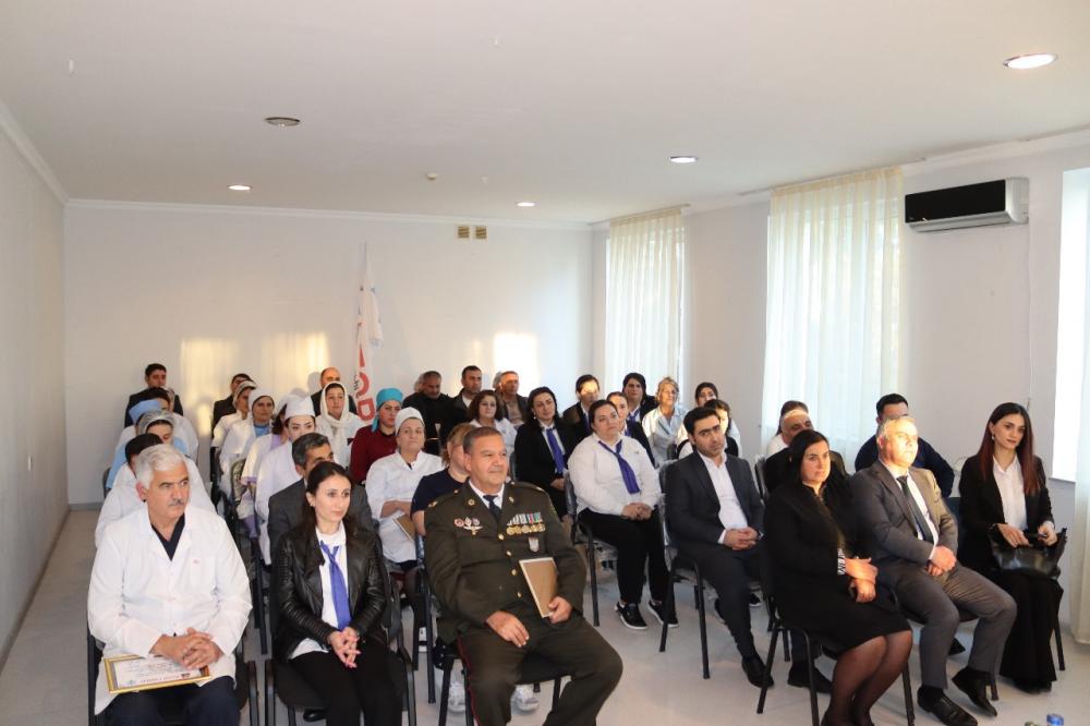 Tədbiri giriş sözü ilə açan YAP İmişli rayon təşkilatının sədri Səfa Ağayev bildirib ki, ərazi bütövlüyümüz uğrunda başlanan Vətən müharibəsində döyüşçülərlə birgə həkimlərimiz də Ali Baş Komandan İlham Əliyevin ətrafında sıx birləşdilər. Vətən müharibəsində tibb işçiləri elə ilk gündən ön və arxa cəbhədə öz şərəfli borclarını ləyaqətlə yerinə yetirdilər. Respublikamızın tanınmış həkimlərindən ibarət tibbi personal könüllü olaraq cəbhə bölgəsindəki hərbi hospitallara ezam edildilər. Qızğın döyüşlərdə yaralanmış hərbi qulluqçularımız peşəkar həkimlər tərəfindən diqqətlə müayinə və müalicə edilirdilər. Həmçinin peşəkar, təcrübəli həkimlərimiz döyüş bölgələrində təcili təxirəsalınmaz əməliyyatların iştirakçısıdırlar.