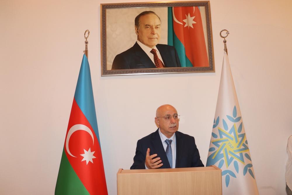Tədbirdə çıxış edən kimya elmləri doktoru, professor Əfsun Sucayev qeyd edib ki, Azərbaycanın hakim partiyası olan Yeni Azərbaycan Partiyasının yaradılmasından 32 il ötür: “Tarixi xranologiyaya nəzər yetirsək görərik ki, Partiyanın yaradılması elə bir dövrə təsadüf edirki, o zaman Azərbaycan ikinci dəfə öz müstəqilliyini itirmək təhlükəsi ilə üz-üzə idi. Azərbaycan və Ermənistan müahribəsi ilə yanaşı daxildə də vətəndaş müharibəsi ilə qarşı-qarşıya qalmışdıq. Azərbaycan parcalanmaq təhlükəsi var idi. Belə bir dönəmdə Yeni Azərbaycan Partiyasının yaradılması ölkənin taleyində mühüm rol oynadı. Yaranan partiya daim yeniləşən Azədbaycan naminə ideyasını özünə əsas istiqamət seçdi”.