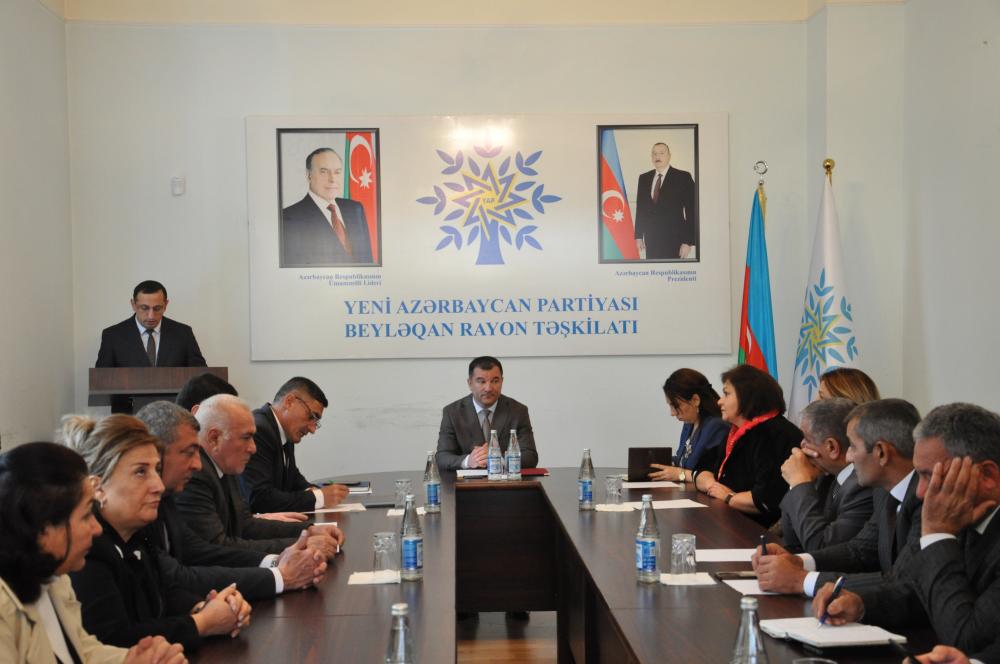 Çıxış edən Beyləqan Rayon İcra Hakimiyyəti başçısının müavini, Ərazi Partiya Təşkilatının sədri Yeganə Məmmədova bildirdi ki, 21 noyabr 1992-ci ildə Naxçıvan şəhərində 550 nəfər nümayəndənin iştirakı ilə Yeni Azərbaycan Partiyası təsis olundu və Ulu Öndər Heydər Əliyev Yeni Azərbaycan Partiyasının sədri seçildi. Ümummilli Lider Heydər Əliyevin rəhbərlik etdiyi Yeni Azərbaycan Partiyası qısa müddət ərzində təşkilatlandı, xalqın dəstəyi ilə 1993-cü ildə hakimiyyətə gəldi. Bu xalqın dahi rəhbərə böyük inamının, onun rəhbərlik etdiyi partiyaya dəstəyinin bariz ifadəsi idi. Yeni Azərbaycan Partiyası yaranmasaydı və Ulu Öndər Heydər Əliyev hakimiyyətə gəlməsəydi ölkəmiz tamamilə fərqli tale yaşayacaqdı. Ümummilli Lider Heydər Əliyevin hakimiyyətə gəlməsi Azərbaycanın bəlalardan xilas olmasına gətirib çıxardı. Xaos, anarxiya, iqtisadiyyatda tənəzzül aradan qaldırıldı. İslahatlar həyata keçirildi, separatizimin qarşısı alındı. Azərbaycanın bu gün ki, inkişafa gəlib çatması üçün əlverişli mühit yarandı.,