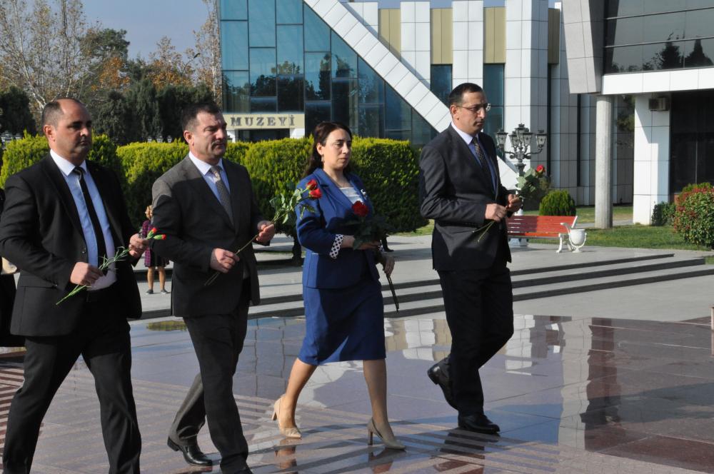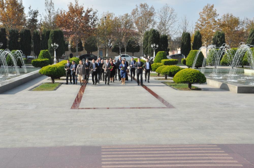 Əvvəlcə Ulu Öndər Heydər Əliyevin abidəsi önünə gül dəstələri qoyulub, dahi şəxsiyyətin xatirəsi ehtiramla yad olunub.