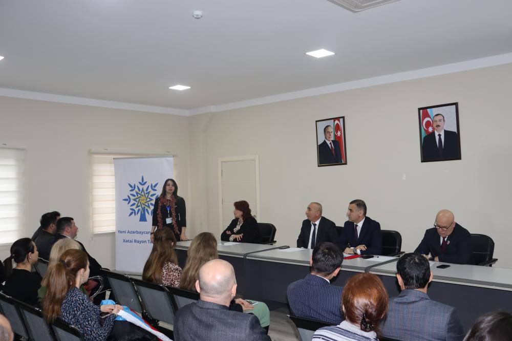 YAP Xətai rayon təşkilatının sədri Ramil Mirzəyev tarixi uğurlara imza atan Azərbaycanın yeni hədəflərə doğru inamla irəlilədiyini söyləyib. O, Prezident, Yeni Azərbaycan Partiyasının Sədri İlham Əliyevin rəhbərliyi ilə bütün sahələr üzrə əldə olunan nailiyyətlərin önəmini vurğulayıb. Davamlı olaraq həyata keçirilən islahatların bələdiyyə institutunun inkişafına da müsbət təsir göstərdiyi qeyd olunub.