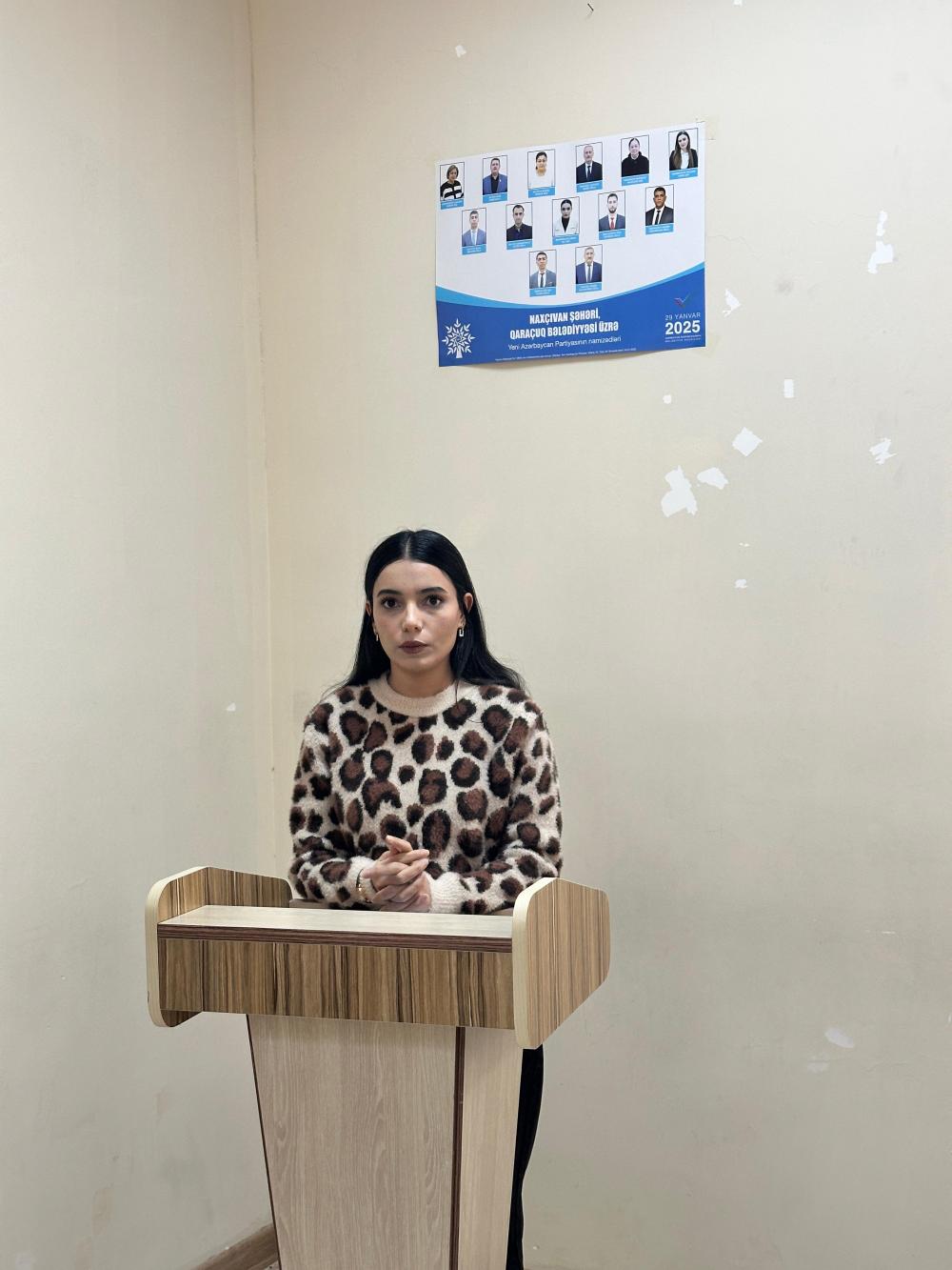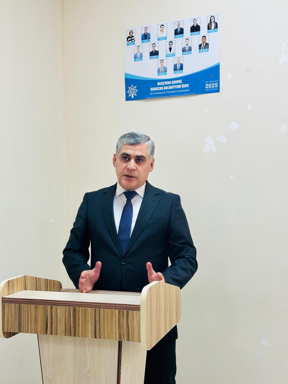 Azərbaycan Respublikasında 2025-ci il yanvarın 29-na təyin edilmiş bələdiyyə seçkilərinin təşviqat mərhələsi çərçivəsində Naxçıvan şəhəri, Qaraçuq bələdiyyəsi üzrə Yeni Azərbaycan Partiyasının (YAP) namizədlərinin seçicilərlə görüşü keçirilib.