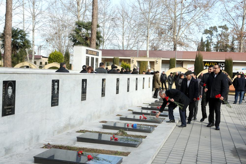 Tədbir iştirakçıları şəhidlərin abidəsi üzərinə qərənfil dəstələri düzərək, şəhidlərin xatirəsini ehtiramla yad etmişlər.