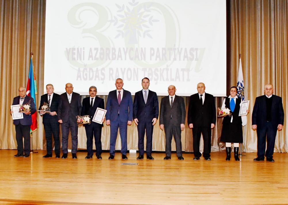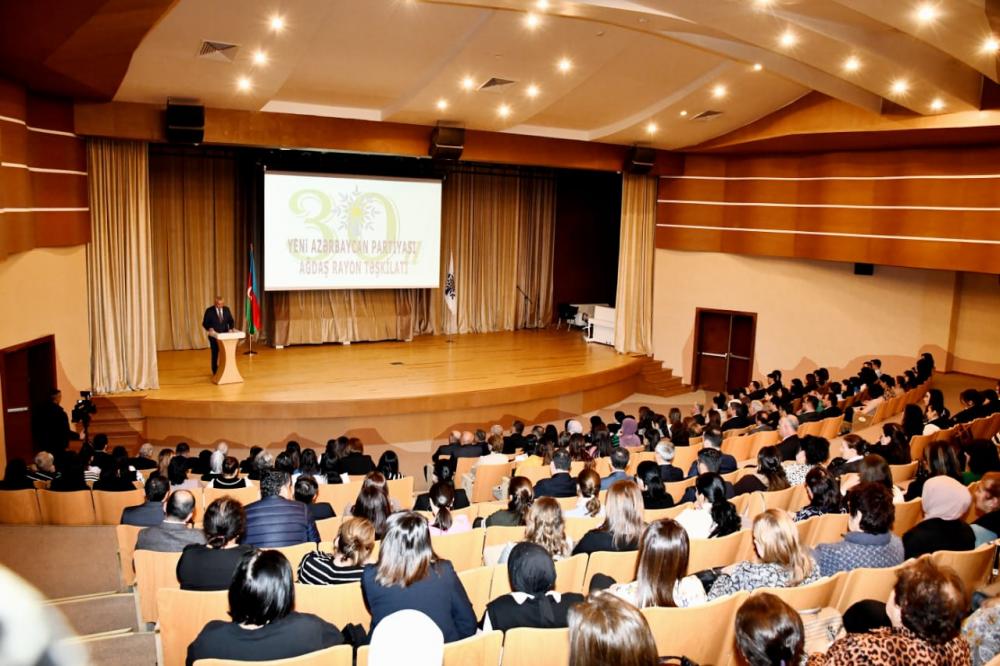 Yeni Azərbaycan Partiyası Ağdaş rayon təşkilatının yaradılmasının 30 illik yubileyi qeyd edilib. Əvvəlcə partiya fəalları Azərbaycan xalqının Ümummilli Lideri, Yeni Azərbaycan Partiyasının banisi Heydər Əliyevin rayon mərkəzində ucaldılan abidəsini ziyarət edib, xatirəsini ehtiramla anıb, abidə önünə gül dəstələri düzüblər. Həmçinin Heydər Əliyev Mərkəzində ulu öndərin həyat və fəaliyyətini özündə əks etdirən muzeyə baxış keçirilib.
