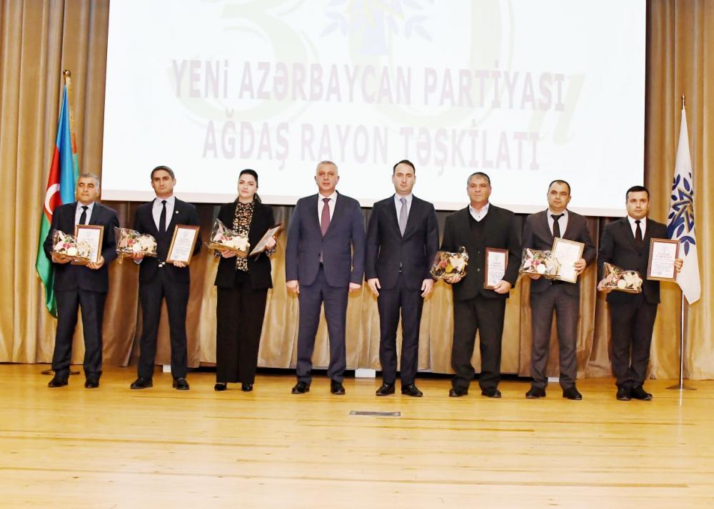 Yeni Azərbaycan Partiyası Ağdaş rayon təşkilatında yüksək xidmətləri ilə fəqrlənən bir qrup partiya fəalına Fəxri fərman və hədiyyələr, həmçinin partiya sıralarına yeni qəbul olunmuş üzvlərə üzvlük vəsiqələri təqdim edilib.