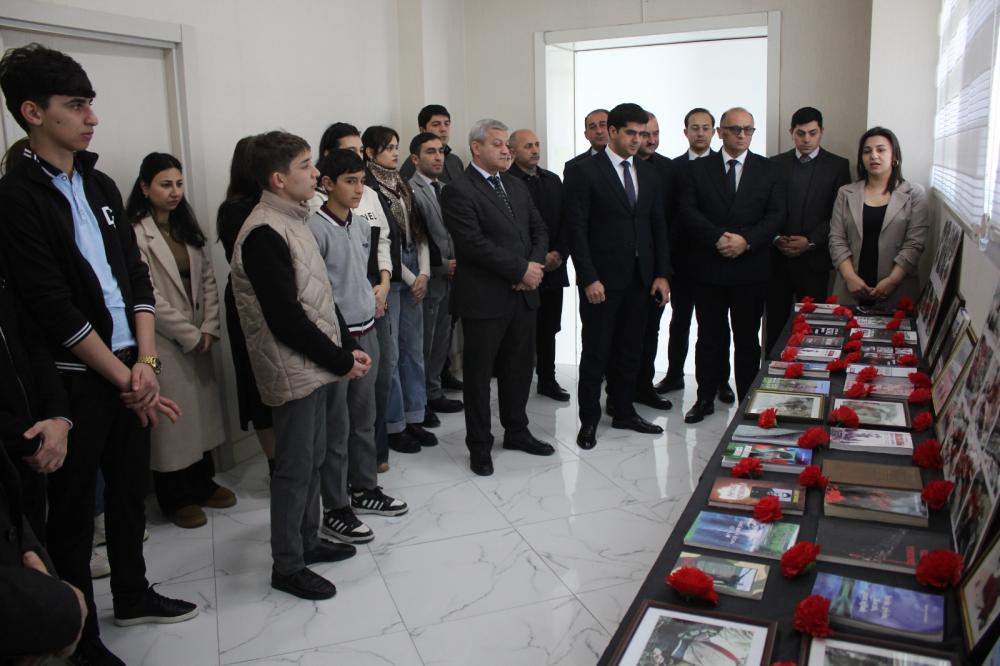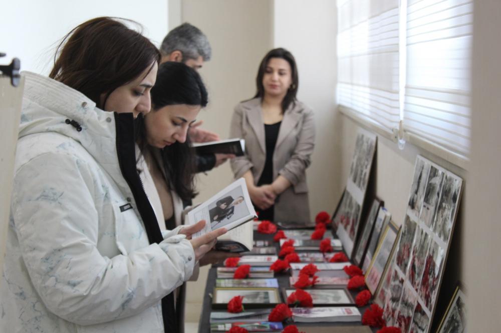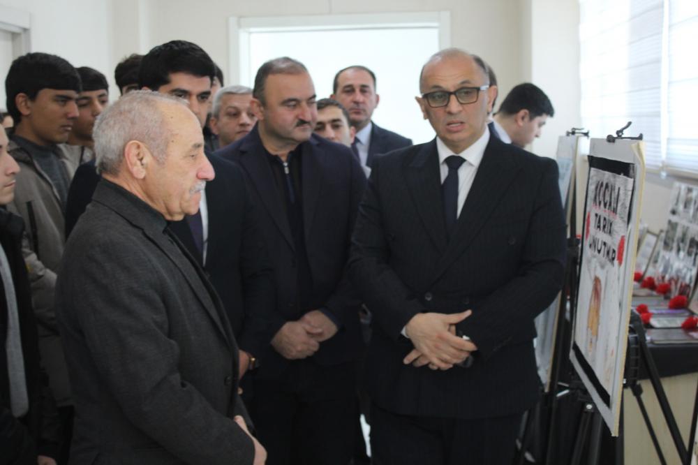 İlk öncə “Xocalı soyqırımı bəşəriyyətə qarşı cinayətdir” mövzusunda əl işlərindən ibarət sərgiyə baxış keçirilib.