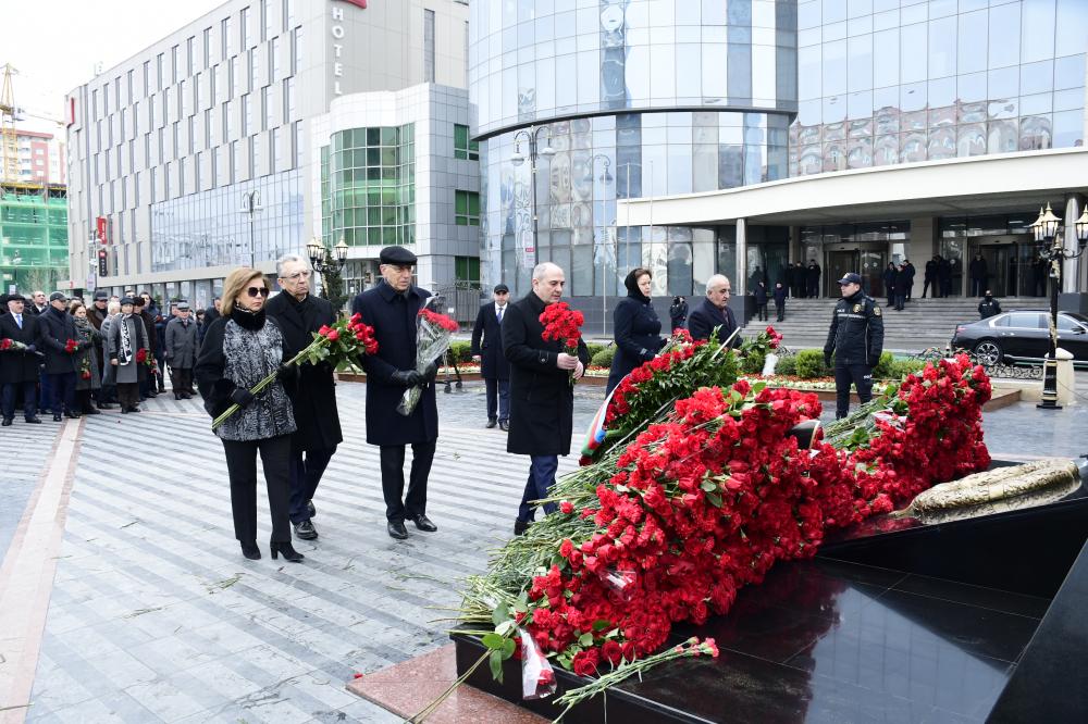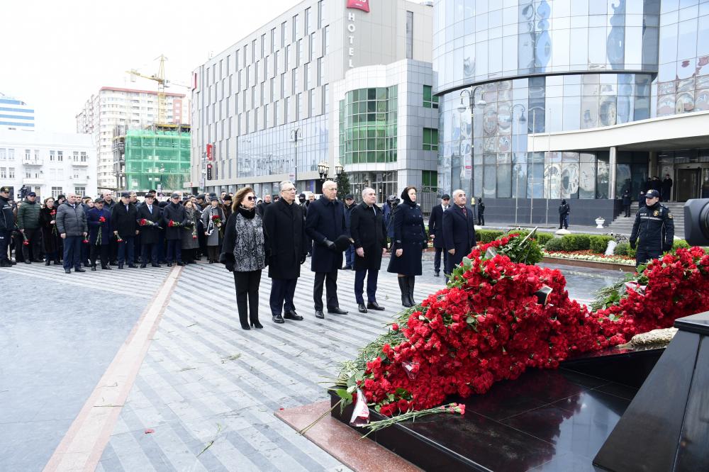 Abidənin önünə əklil və gül dəstələri qoyulub, soyqırımı qurbanlarının əziz xatirəsi ehtiramla yad olunub.