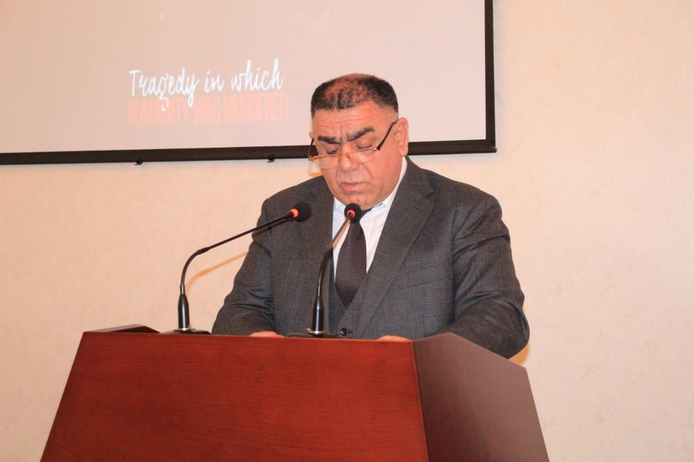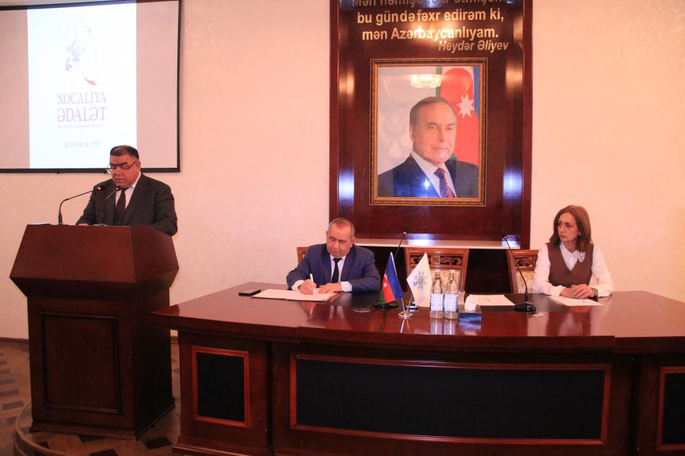 Ümummilli Lider Heydər Əliyevin, Xocalı soyqırımı qurbanlarının, müstəqilliyimiz və ərazi bütövlüyümüz uğrunda canlarını fəda etmiş şəhidlərin xatirəsi 1 dəqiqəlik sükutla yad edilmişdir. Daha sonra Xocalı soyqırımı zamanı ermənilərin törətdiyi vəhşilikləri əks etdirən videoçarx nümayiş etdirilmişdir. Filmin nümaişindən sonra YAP Ağcabədi rayon təşkilatının sədri Rövşən Əhmədov mövzu ilə əlaqədar geniş məruzə etmişdir. Məruzədə qeyd edilmişdir ki, tarix boyu azərbaycanlılara qarşı ən qatı cinayətlər həyata keçirməkdən çəkinməyən ermənilər XX əsrin sonlarında bütün bəşəriyyətə və insanlığa ləkə olan növbəti cinayəti - Xocalı qətliamını həyata keçirdilər. Xocalı faciəsi XX əsrin ən dəhşətli və ən qəddarcasına törədilmiş Xatın, Xirosima faciələri ilə eyni səviyyədə durur.