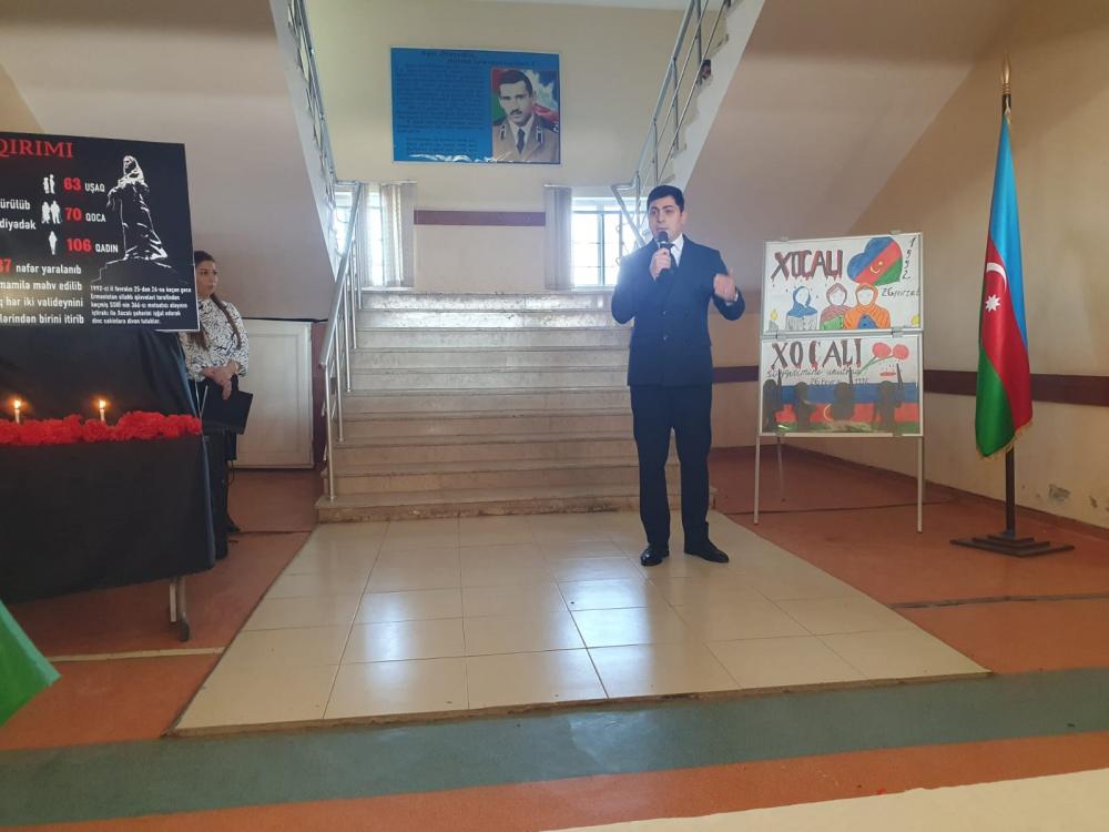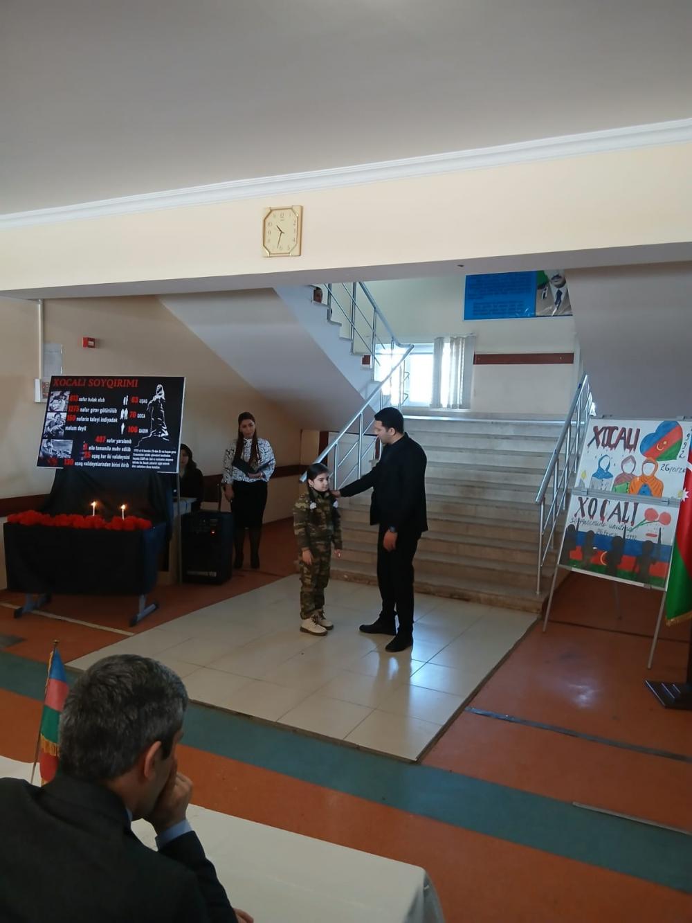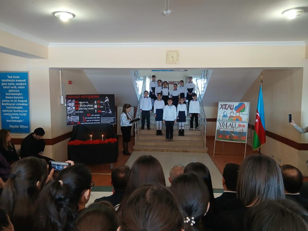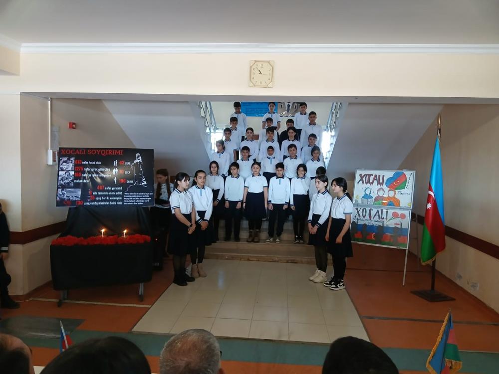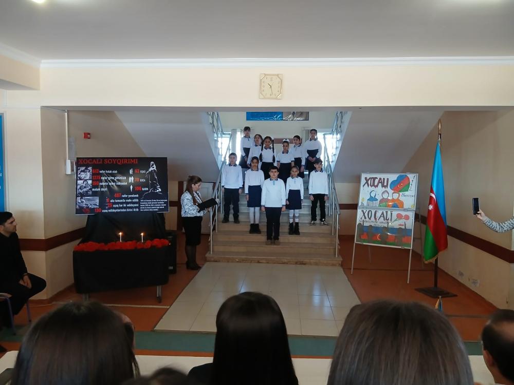 Məktəbin şagirdləri 26 fevral Xocalı soyqırımına həsr olunmuş şeirlər səsləndiriblər.
