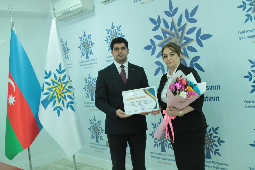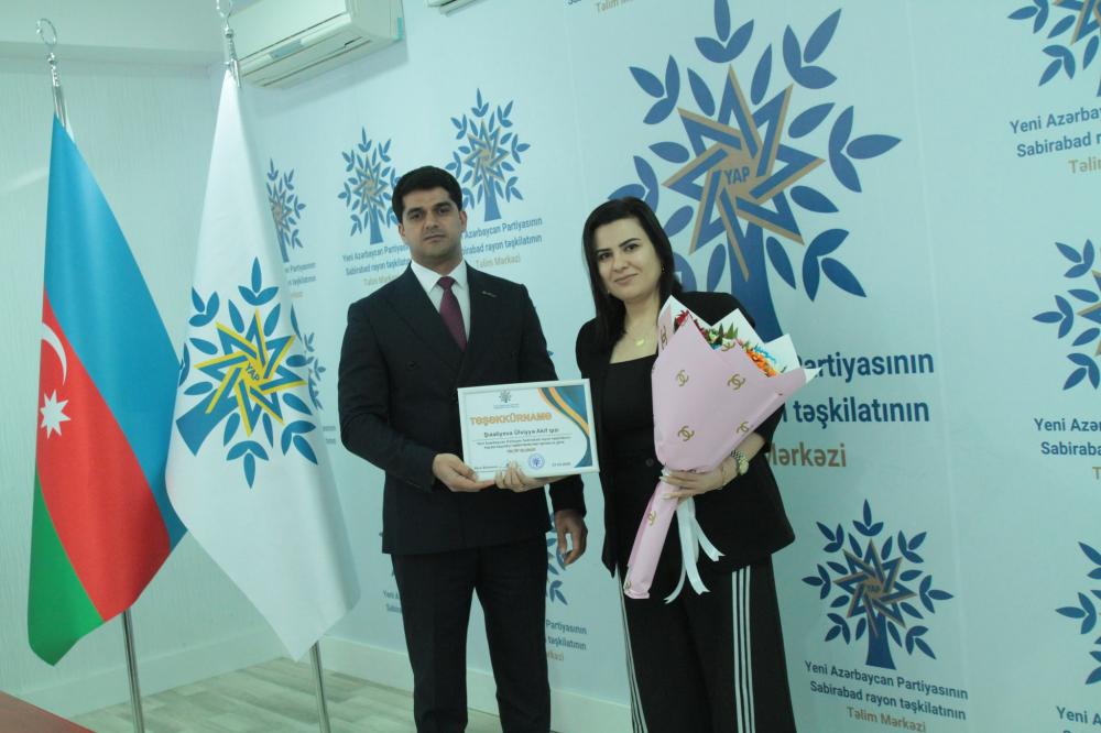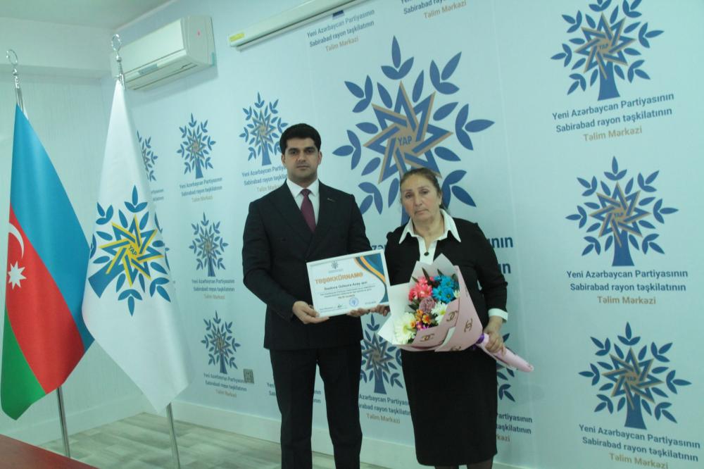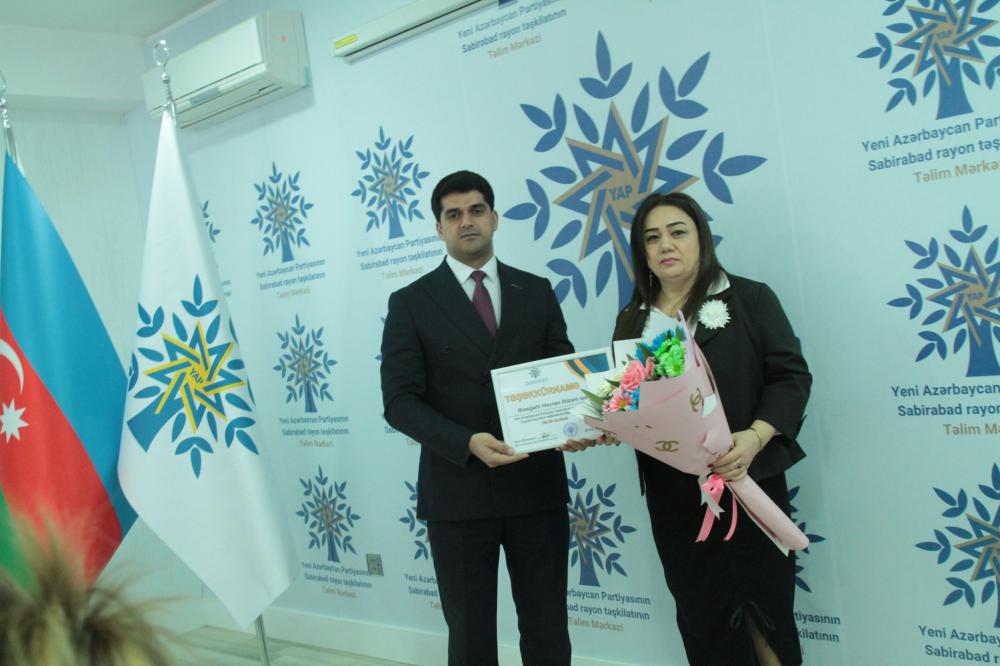Daha sonra YAP Sabirabad rayon təşkilatının həyata keçirdiyi tədbirlərdə fəal iştirakına görə bir qrup partiya fəallarına təşəkkürnamə təqdim olunub.