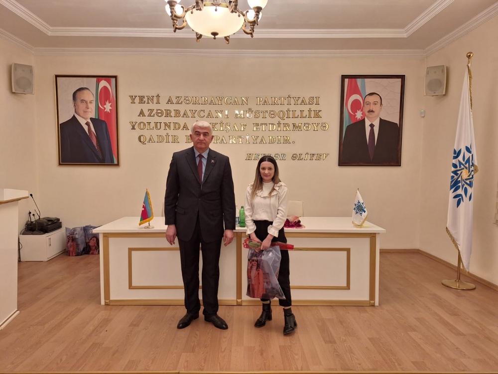 Sonda YAP sıralarına yeni qəbul olunmuş gənclərə partiya üzvlük vəsiqələri təqdim edildi, ən fəal partiya üzvləri Fəxri Fərmanla təltif olundu və tədbir iştirakçılarına bayram hədiyyələri verildi.