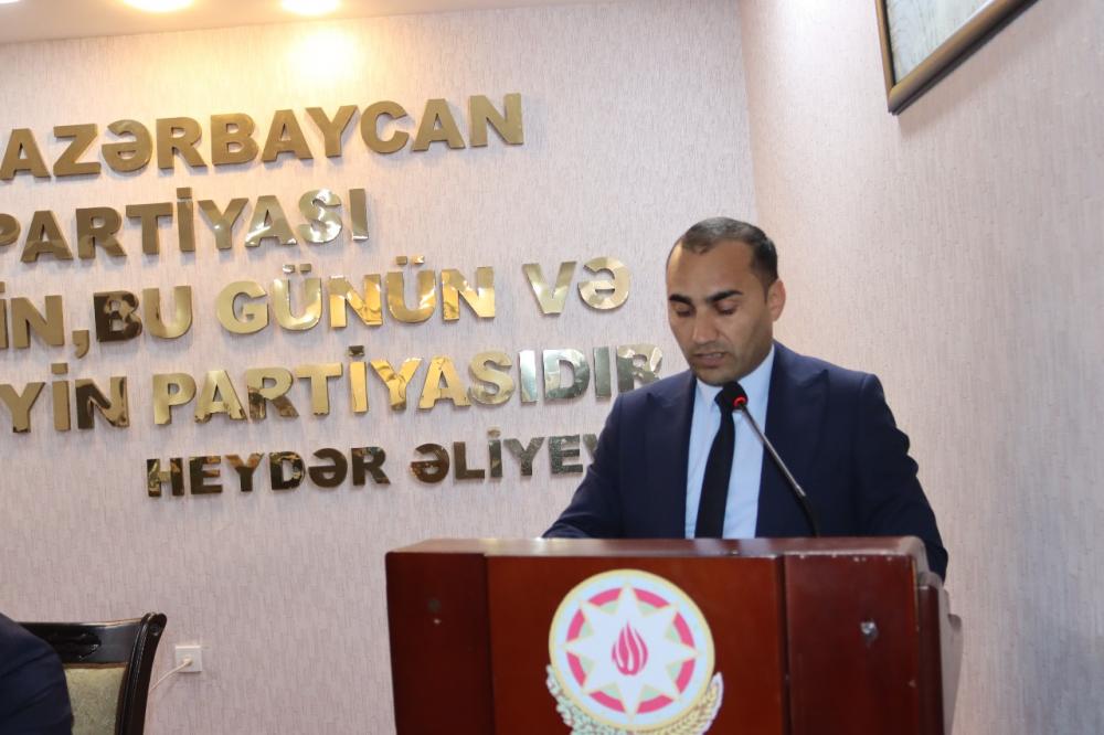 Tədbiri giriş sözü ilə açan YAP İmişli rayon təşkilatının sədri Səfa Ağayev Azərbaycan Respublikasının ərazi bütövlüyünün və suverenliyinin tam bərpa olunduğunu qeyd edib. Azərbaycan Respublikasının Prezidenti cənab İlham Əliyevin 27 dekabr 2024-cü il tarixli Sərəncamı ilə 2025-ci ilin Azərbaycan Respublikasında “Konstitusiya və Suverenlik İli” elan olunduğunu vurğulayaraq, Azərbaycan Respublikasının Konstitusiyasının yaranma tarixi haqqında ətraflı danışaraq, Ulu Öndər Heydər Əliyevin Azərbaycan dilinin dövlət dili kimi Konstitusiyaya daxil edilməsi sahəsindəki əvəzolunmaz xidmətlərindən, 1993-cü ildə xalqın təkidli çağırışları ilə yenidən hakimiyyətə gələrək Azərbaycanın hüquqi, demokratik və dünyəvi dövlət kimi formalaşmasındakı rolundan bəhs edib.
