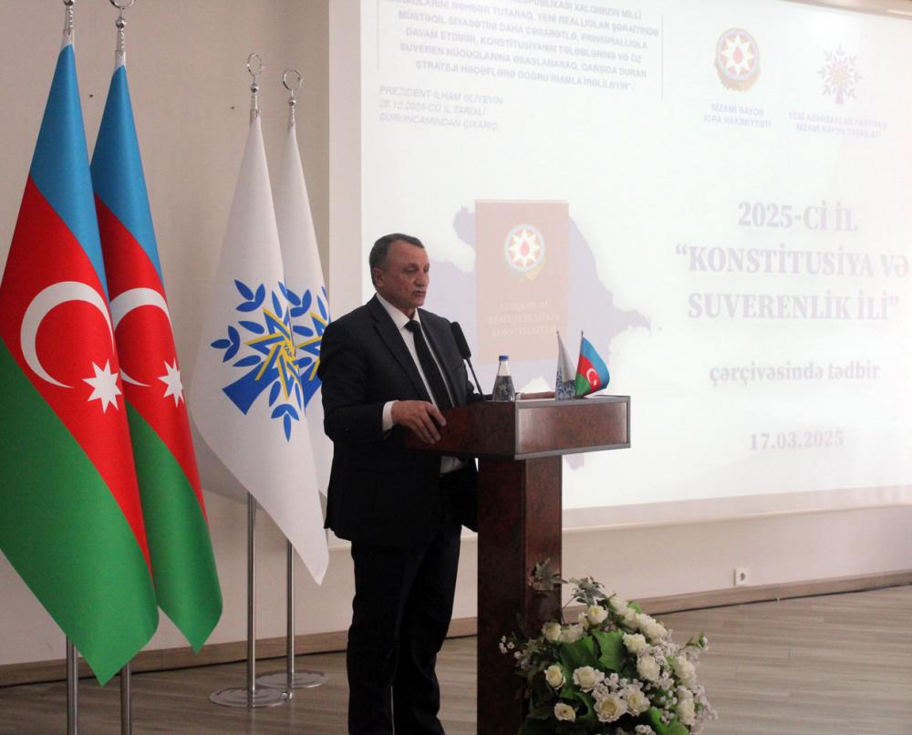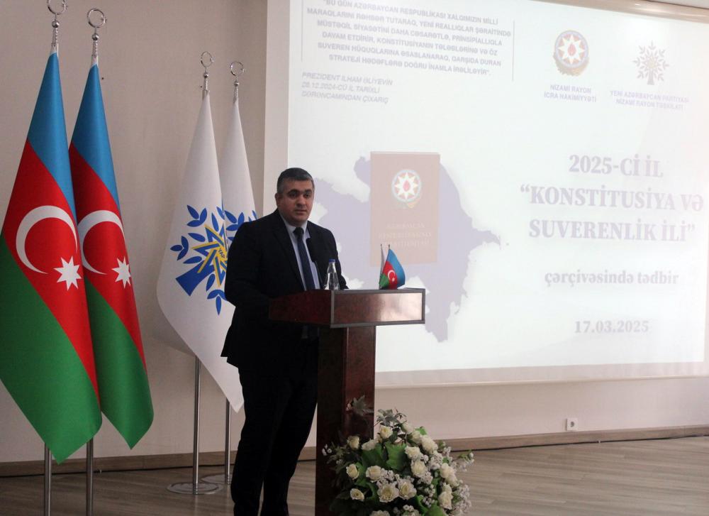Nizami rayonunda “Konstitusiya və Suverenlik İli”nə həsr olunmuş tədbir keçirilib