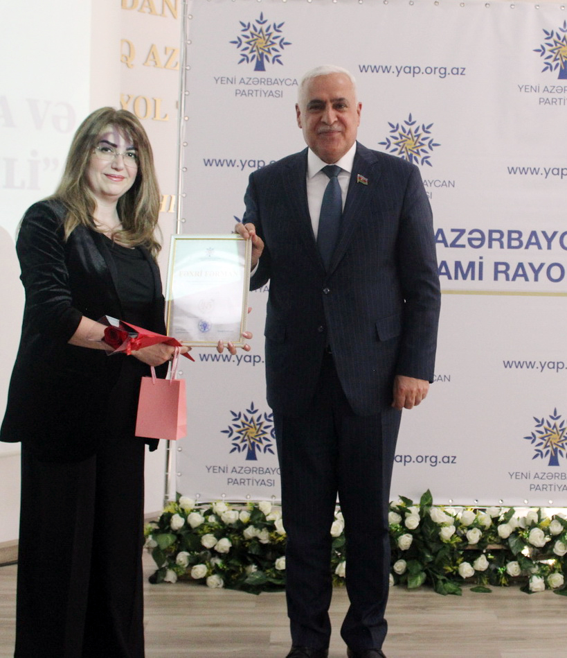 Çıxışlardan sonra mükafatlandırma mərasimi keçirilib. Uzun müddət partiya dəyərlərinin təbliğində və ictimai proseslərdə aktiv iştirak edən, yubiley yaşında olan partiya veteranları, eləcə də YAP Nizami rayon təşkilatının könüllülük layihəsinin məzunları təltif olunub, Yeni Azərbaycan Partiyasına üzv qəbul edilmiş şəxslərə isə vəsiqələri təqdim edilib.