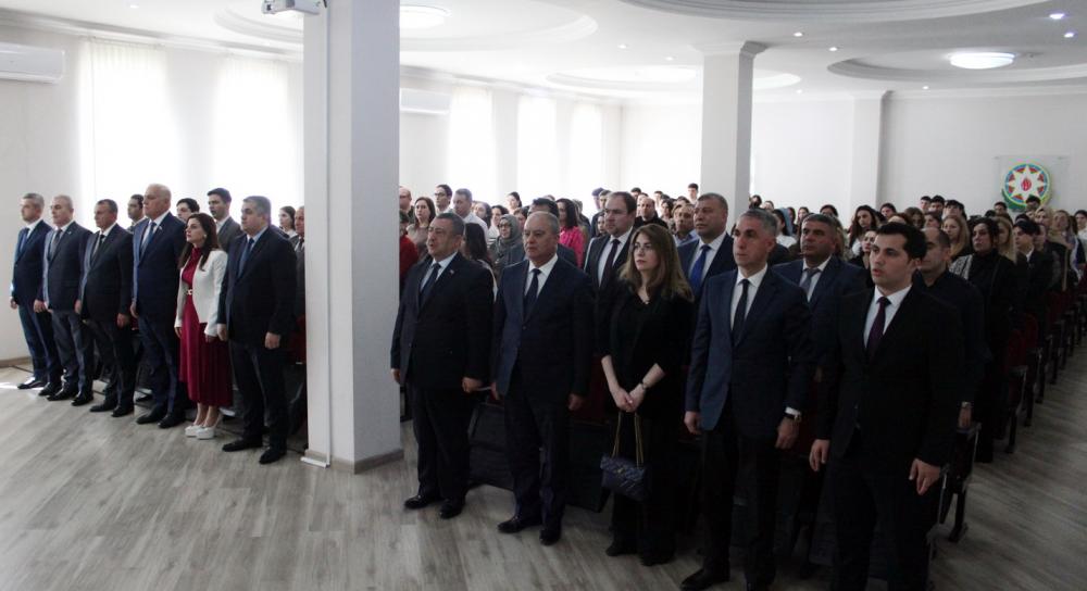 Azərbaycan Respublikasının Dövlət Himinin səsləndirilməsi ilə başlanan tədbirdə müasir, müstəqil Azərbaycan Respublikasının Konstitusiyasının müəllifi Ulu Öndər Heydər Əliyevin, eləcə də ölkəmizin suverenliyi uğrunda canını fəda etmiş şəhidlərin əziz xatirəsi bir dəqiqəlik sükutla yad edilib.