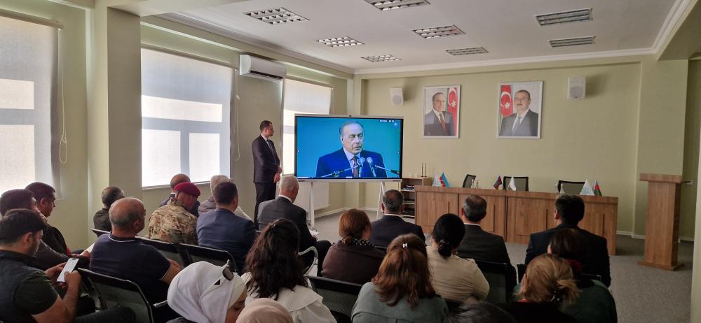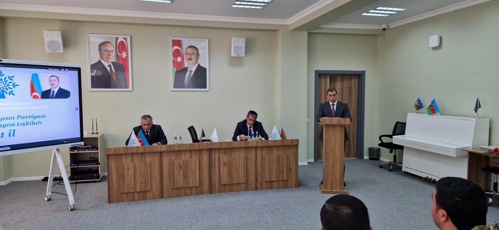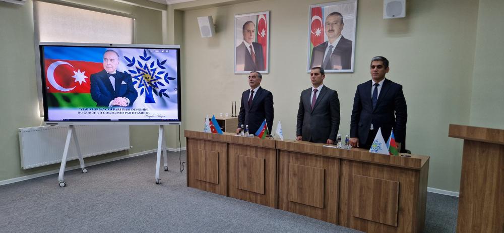 Rayon təşkilatının sədri Natiq Quluzadə giriş nitqi ilə çıxış edərək bildirdi ki, Yeni Azərbaycan Partiyasının tarix ərzində əldə etdiyi uğurları və gələcək hədəfləri ilə xalqımızın birliyini və gücünü təmsil edən rəqibsiz bir siyasi təşkilat olaraq, ölkəmizin inkişafı naminə fəaliyyətini hər zaman uğurla davam etdirəcəkdir. O qeyd edib ki, partiya Ulu Öndər Heydər Əliyevin uzaqgörən ideyaları əsasında qurulmuşdur və onun əsas prinsipləri milli həmrəylik, dövlətçiliyin möhkəmləndirilməsi və Azərbaycanın müstəqilliyinin qorunmasıdır. Bu ideyaların Cənab Prezident İlham Əliyev tərəfindən uğurla davam etdirilməsi ölkəmizin hərtərəfli inkişafına əsas yaratmış, gələcək nəsillərə daha güclü, daha firavan bir Azərbaycan təqdim etmək məqsədini həyatımıza gətirmişdir.