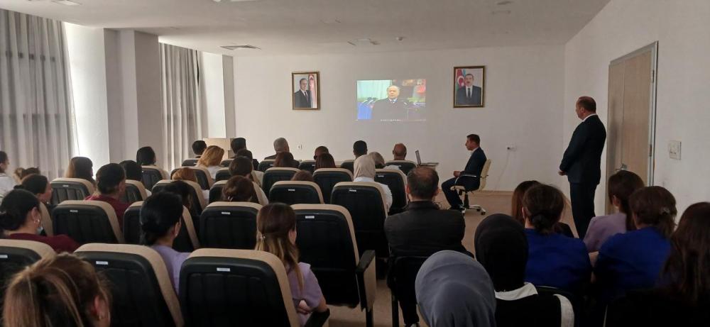 Tədbirdə İlk olaraq Ümummilli Lider Heydər Əliyevin və torpaqlarımızın azadlığı uğrunda canlarını qurban verən şəhidlərimizin əziz xatirəsi bir dəqiqəlik sükutla yad olunmuşdur.