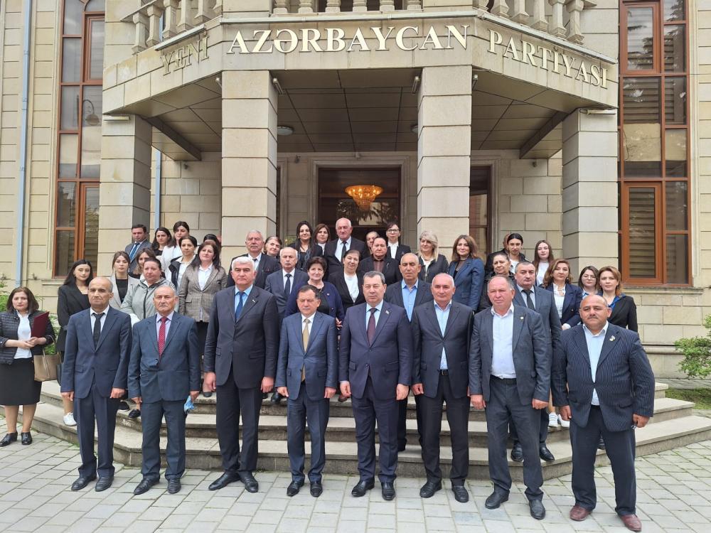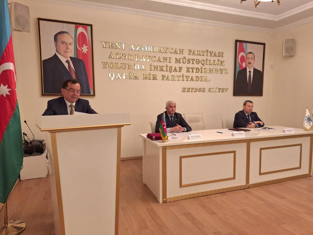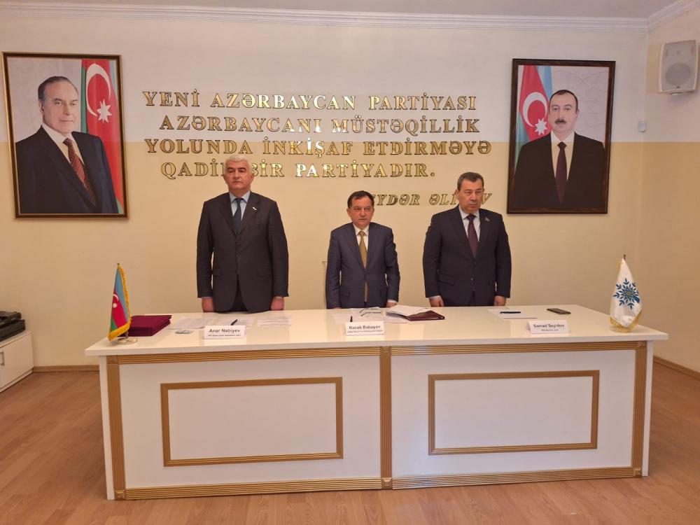 YAP Təftiş Komissiyasının üzvü, Milli Məclisin Beynəlxalq Münasibətlər və Parlamentlərarası əlaqələr komitəsinin sədri Səməd Seyidov çıxış edərək dünyadakı mövcud durumdan, beynəlxalq aləmdə cərəyan edən hadisələrdən, Möhtərəm Prezidentimiz İlham Əliyev cənablarının rəhbərliyi ilə ölkəmizin qazandığı uğurlardan, qələbələrdən ətraflı danışaraq, Ümummilli Lider Heydər Əliyevin siyasi kursunun bu gün uğurla davam etdirildiyini və müstəqil, suveren Azərbaycanın beynəlxalq aləmdə söz sahibi, nüfuz sahibi olduğunu və hazırda ölkəmizin yeni bir inkişaf dövrünü yaşadığını xüsusi vurğuladı.