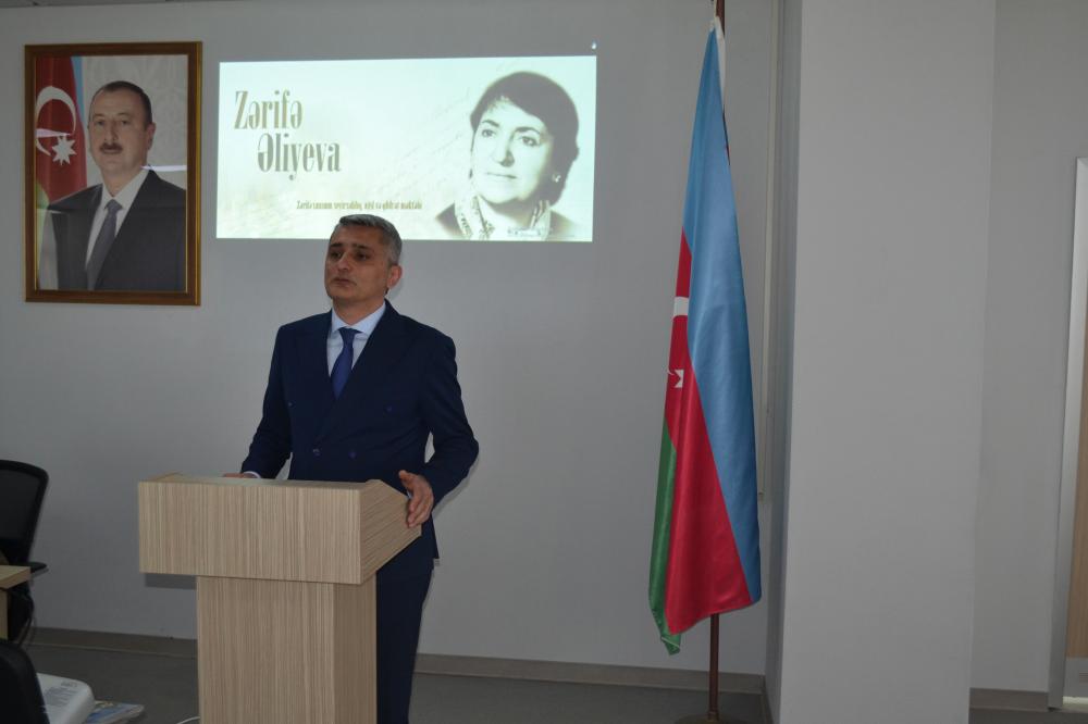 Rayon İcra Hakimiyyətinin başçısının birinci müavini Süleyman Zeynallı açılış nitqi ilə çıxış edərək müstəsna xidmətləri ilə əbədilik qazanan Zərifə xanım Əliyevanın mənalı və şərəfli həyat yolu, zəngin və çoxşaxəli irsi haqda geniş məruzə edib. S.Zeynallı qeyd edib ki, bu gün Azərbaycanda tibb sahəsinin inkişafına mühüm töhfələr vermiş, minlərlər insana nur bəxş etmiş, əməkdar elm xadimi Zərifə xanım Əliyevanın işığına toplaşmışıq. Təkcə Azərbaycanın deyil, dünya tibb elminə öz töhfələrini verən, akademik Zərifə xanım Azərbaycan oftalmologiyasını dünya səviyyəsində tanıtmışdır. Zərifə xanım Əliyeva 150-yə yaxın elmi əsərin, 12 monoqrafiyanın, dərslik və dərs vəsaitlərinin, 1 ixtira, 12 səmərələşdirici təklifin müəllifi və həmmüəllifi olmuşdur. 1981-ci ildə oftalmologiyanın inkişafına verdiyi böyük töhfəyə görmə orqanının peşə patologiyası sahəsində apardığı elmi tədqiqatlara görə professor Zərifə xanım Əliyeva oftalmologiya aləmində ən yüksək mükafata – SSRİ Tibb Elmləri Akademiyasının akademik M.İ.Averbax adına mükafatına layiq görülmüşdür. Zərifə xanım bu mükafata layiq görülmüş ilk azərbaycanlı qadın olmuşdur.