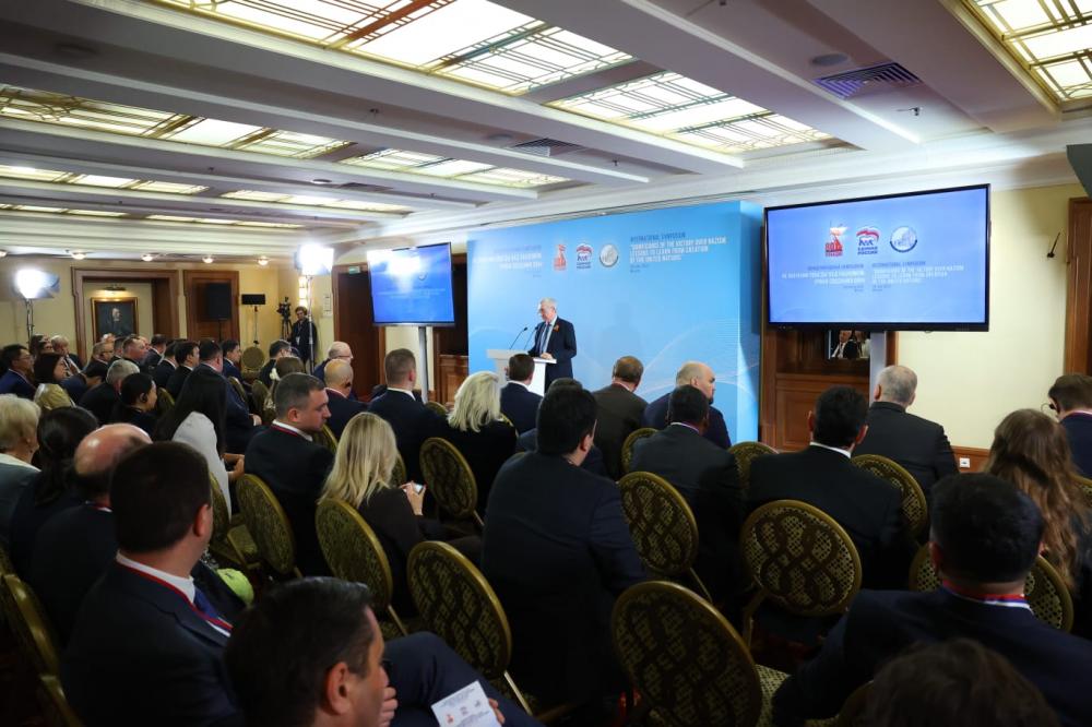25 ölkədən olan siyasi partiyaların 80-dən artıq nümayəndəsinin iştirak etdiyi simpoziumun açılış mərasimində “Yedinaya Rossiya” Ümumrusiya Siyasi Partiyasının sədri, Rusiya Federasiyası Təhlükəsizlik Şurası sədrinin müavini Dmitri Medvedevin videomüraciəti səsləndirilib, daha sonra “Yedinaya Rossiya” Partiyası Baş Şurasının katibi, Rusiya Federasiyası Federal Məclisinin Federasiya Şurası sədrinin birinci müavini Vladimir Yakuşev, “Tarixi yaddaş” Federal Partiya Layihəsinin İctimai Şurasının sədri, Partiya Ali Şurasının Büro üzvü, Rusiya Federasiyası Xarici Kəşfiyyat Xidmətinin direktoru Sergey Narışkin və xarici siyasi partiyaların nümayəndələrinin çıxışları olub.