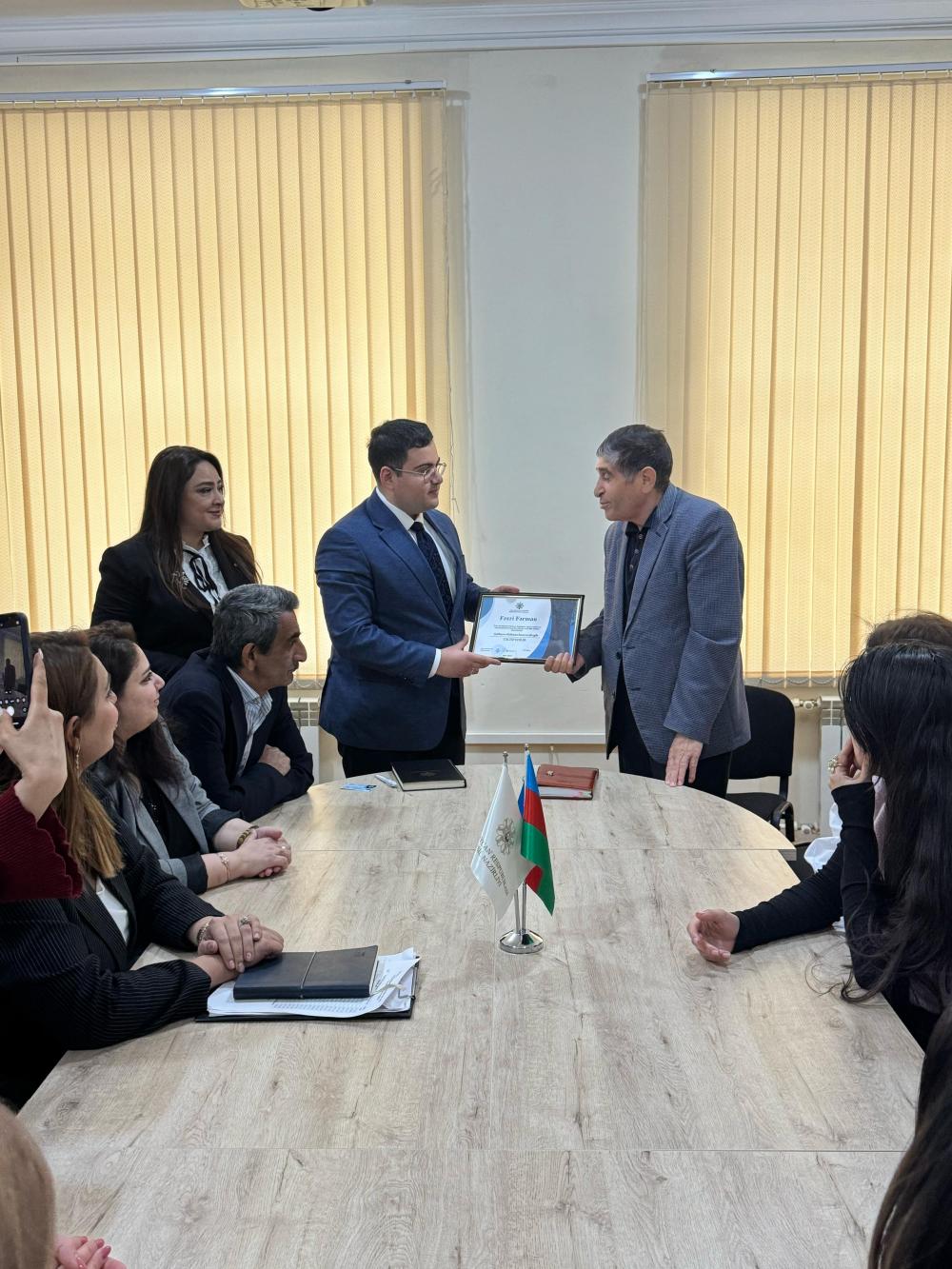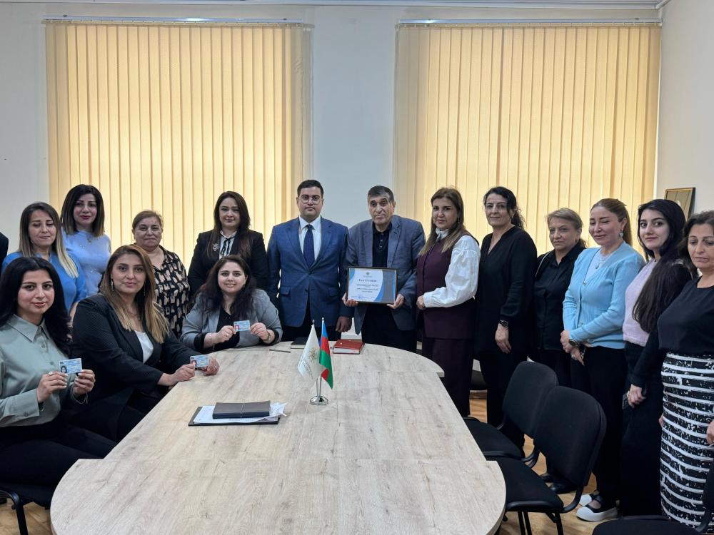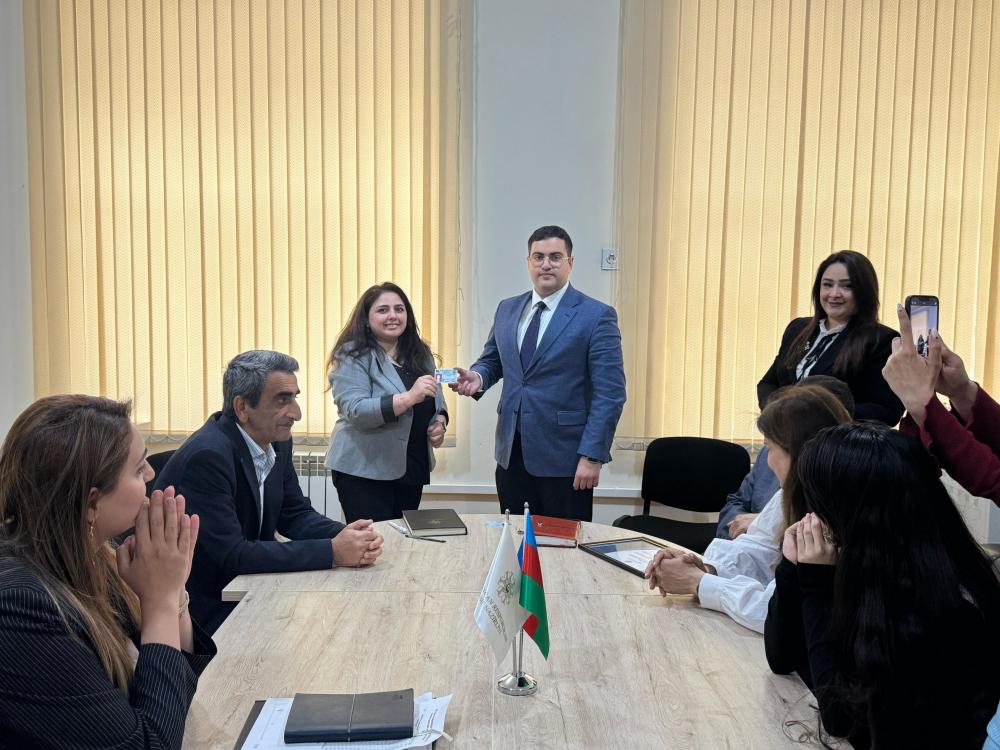 Sonda partiyaya yeni üzv olan şəxslərə üzvlük vəsiqələri təqdim olunub və xatirə şəkli çəkilib.