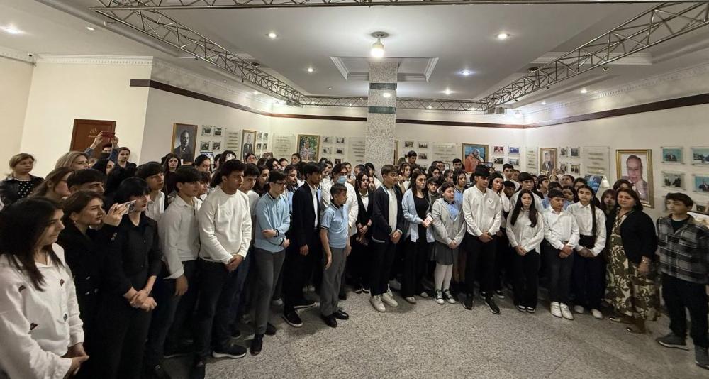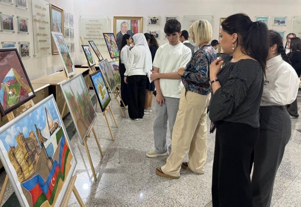 Tədbirdən öncə elan edilmiş rəsm müsabiqəsi çərçivəsində Nizami rayon təhsil müəssisələrinin təmsilçilərinin əl işlərindən ibarət sərgiyə baxış keçirilib.