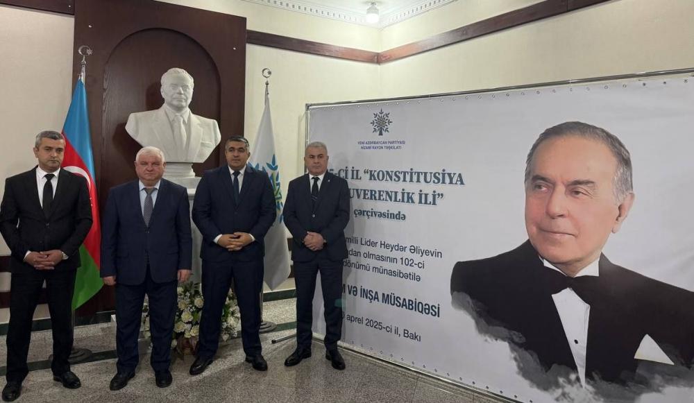 Yeni Azərbaycan Partiyası Nizami rayon təşkilatı “Konstitusiya və Suverenlik İli” çərçivəsində Ümummilli Lider Heydər Əliyevin anadan olmasının 102-ci ildönümü münasibətilə “Zəfər salnaməsi və suverenlik fenomeni” mövzusunda rəsm və inşa müsabiqəsi keçirib.