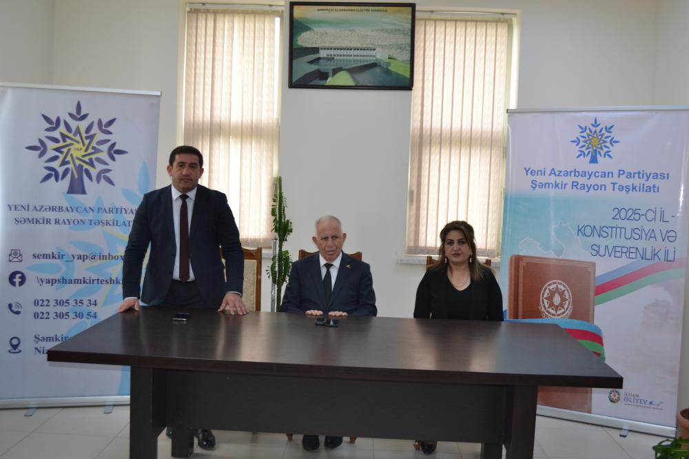 YAP Şəmkir rayon təşkilatının təşkilatçılığı ilə Şəmkirçay Su Anbarı və Magistral Kanalların İstismarı idarəsi ərazi partiya təşkilatında keçirilən tədbirdə YAP Şəmkir rayon təşkilatının sədri Fəxrəddin Vəliyev, Şəmkirçay Su Anbarı və Magistral Kanalların İstismarı idarəsinin direktoru Rəşad Vəliyev, ərazi partiya təşkilatının sədri Nuranə Əmiraslanova, rayon təşkilatının əməkdaşları və ərazi partiya təşkilatının üzvləri iştirak etdilər.
