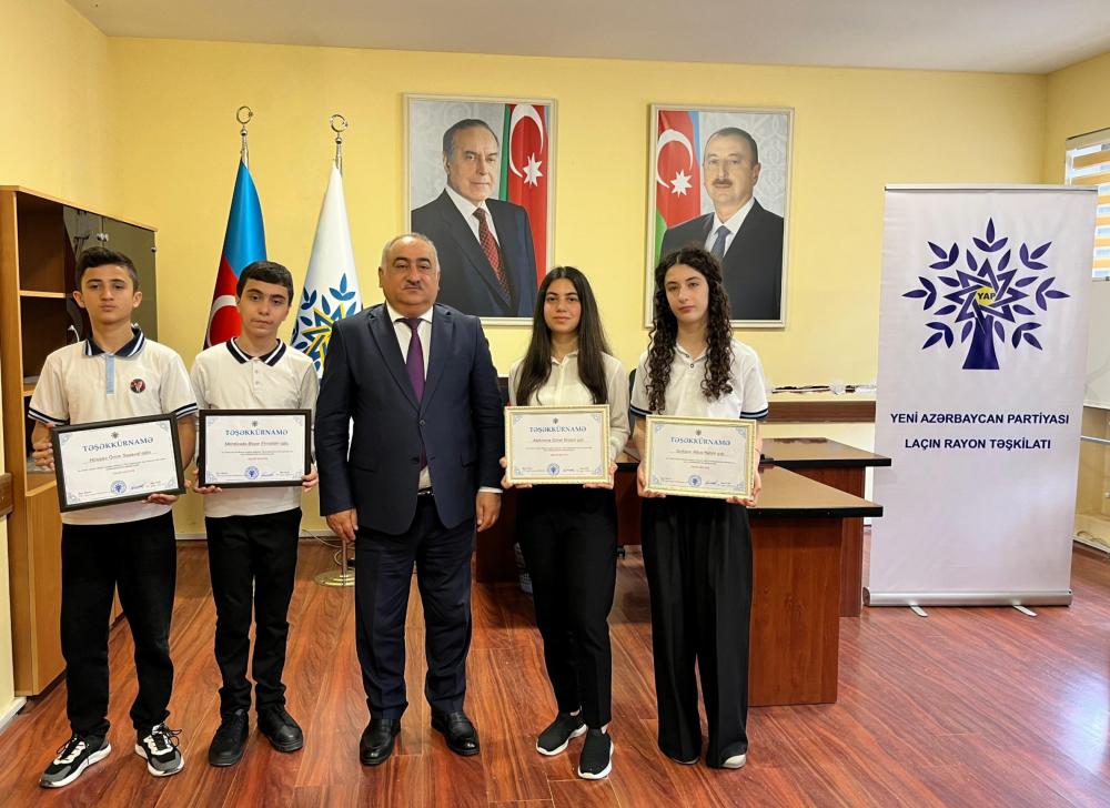 Yeni Azərbaycan Partiyası (YAP) Laçın rayon təşkilatı tərəfindən Ümummilli Lider Heydər Əliyevin anadan olmasının 102-ci ildönümü münasibətilə keçirilən inşa yazı müsabiqəsinin qaliblərinin mükafatlandırılması ilə bağlı tədbir təşkil olunub.