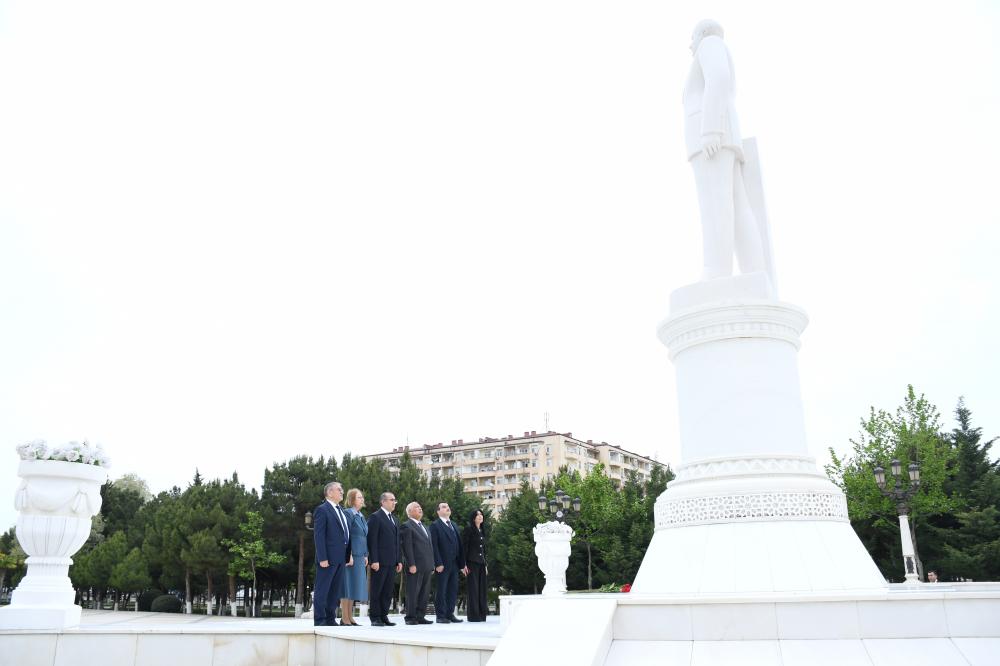 Əvvəlcə Sumqayıt şəhərində Ulu Öndər Heydər Əliyevin abidəsi ziyarət olunub, abidənin önünə gül dəstələri düzülüb.