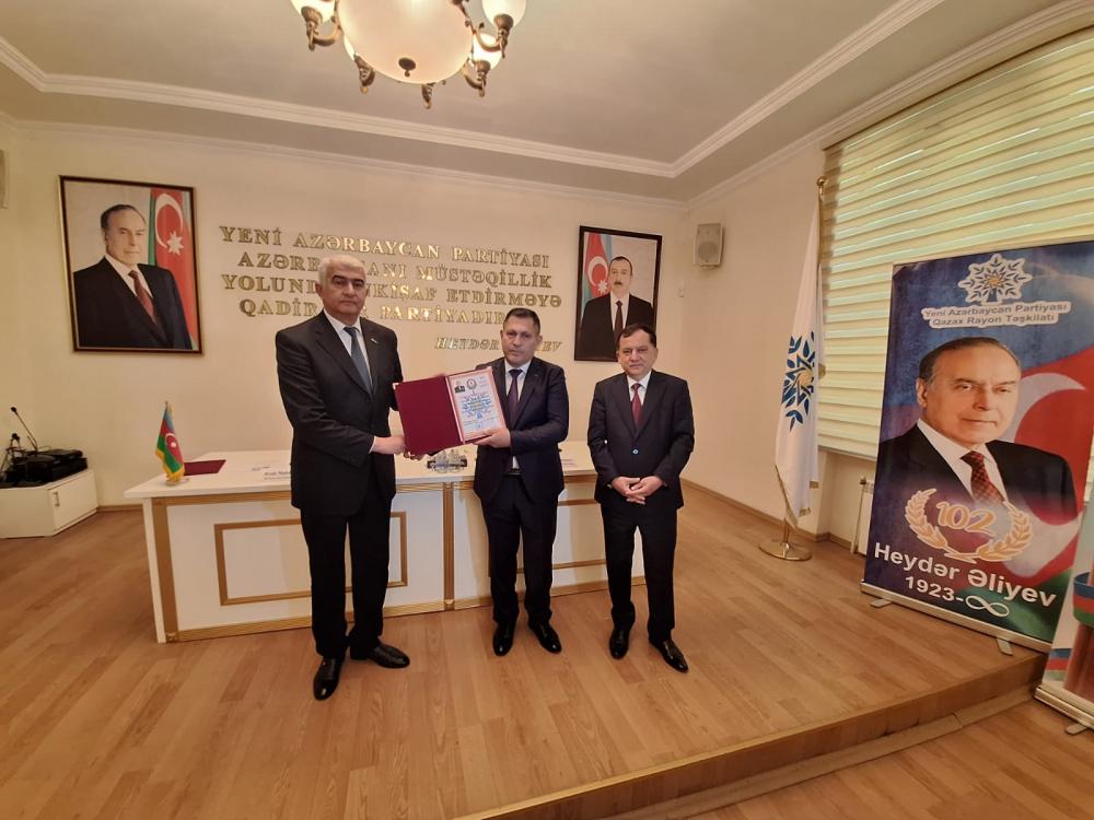 Ən fəal partiya üzvləri YAP Qazax Rayon Təşkilatının Fəxri Fərmanı ilə təltif olunub, partiya sıralarına yeni qəbul olunmuş üzvlərə partiya üzvlük vəsiqələri təqdim edilib.