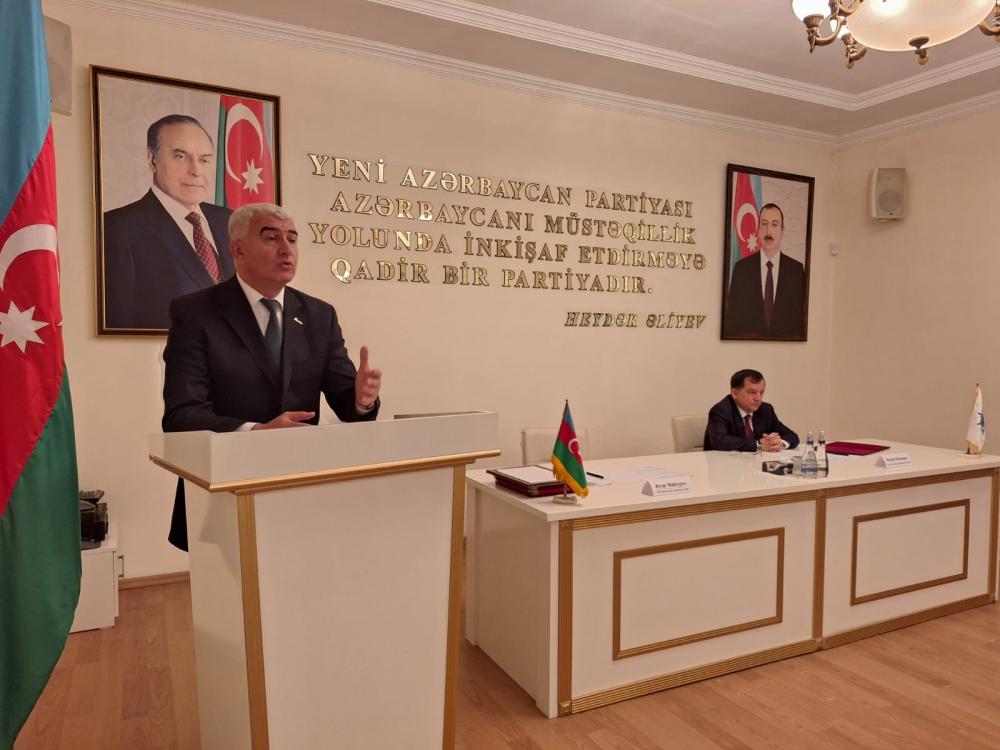 YAP Qazax rayon təşkilatının sədri Anar Nəbiyev tədbiri giriş sözü ilə açaraq Prezident İlham Əliyevin 28 dekabr 2024-cü il tarixli Sərəncamı ilə 2025-ci ilin “Konstitusiya və Suverenlik İli” elan edildiyini və 10 may tarixində Ümummilli Lider Heydər Əliyevin anadan olmasının 102-ci ildönümünün qeyd olunacağını diqqətə çatdırıb. O, çıxışında Ulu Öndər Heydər Əliyevin şərəfli və mənalı ömür yolundan, misilsiz tarixi xidmətlərindən, Ümummilli Liderin siyasi kursunu layiqincə davam etdirən Prezident İlham Əliyevin rəhbərliyi ilə ölkəmizin əldə etdiyi nailiyyətlərdən, qazandığı uğurlardan ətraflı danışıb.
