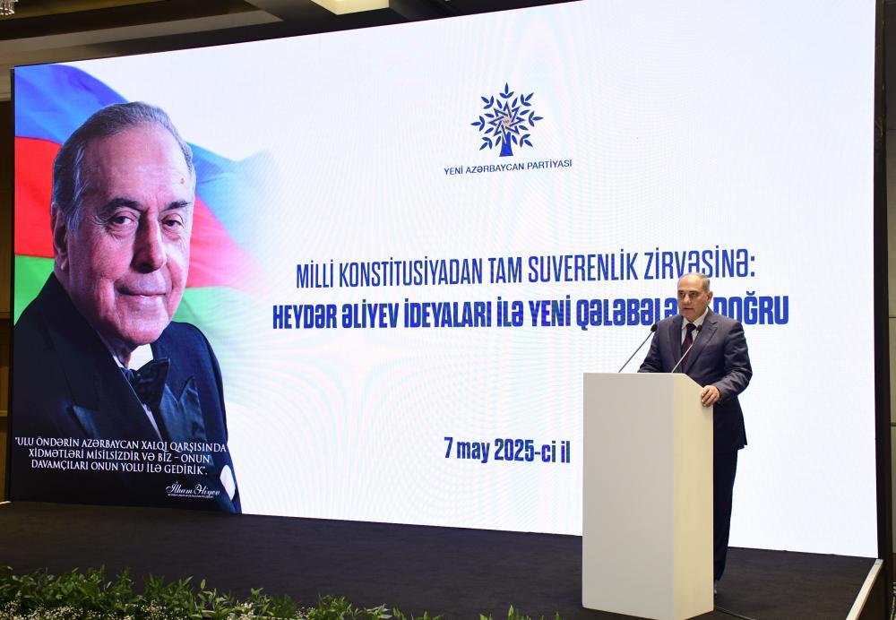 YAP Sədrinin müavini bildirib ki, Ümummilli Liderimiz 2003-cü ildə xalqa müraciət edərək dövlətçiliyimizin qorunub inkişaf etdirilməsi naminə Azərbaycanın gələcəyinə dair aydın baxışını ortaya qoymuşdu: “Xalqımız Heydər Əliyevin müdriklik və uzaqgörənliyinə sonsuz inamı bir daha nümayiş etdirərək cənab İlham Əliyevə qətiyyətli dəstək və yüksək etimad göstərməklə siyasi varisliyi təmin etdi və bununla da ölkəmizin inkişafında yeni mərhələnin əsası qoyuldu. Cənab İlham Əliyevin liderliyi ilə Azərbaycan öz iqtisadi, siyasi, hərbi gücü və xalqımızın əzmkar mövqeyi sayəsində möhtəşəm uğurlar qazandı. Ölkəmizin ərazi bütövlüyü və suverenliyinin tam bərpası isə Heydər Əliyev ideyalarının təntənəsi, Prezident İlham Əliyevin qətiyyətli siyasətinin, diplomatik məharətinin real nəticəsidir. Dövlət başçısının Sərəncamı ilə elan olunan “Konstitusiya və Suverenlik İli” çərçivəsində keçirilən tədbirlər Azərbaycanın bu möhtəşəm Zəfər yoluna – tam suverenlik zirvəsinə yüksəlməsinə hərtərəfli nəzər salınması baxımından böyük əhəmiyyət daşıyır”.