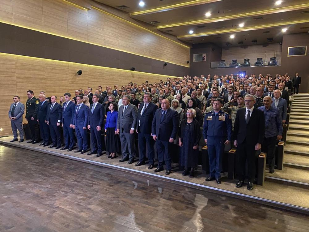 Azərbaycan Respubikasının dövlət himninin səsləndirilməsi ilə başlayan tədbirdə Ümummilli lider Heydər Əliyevin və ölkəmizin ərazi bütövlüyü naminə canından keçən şəhidlərimizin əziz xatirələri bir dəqiqəlik sükutla yad edilib.