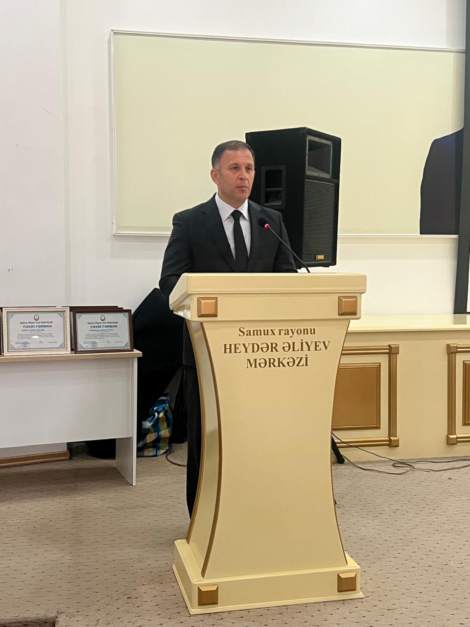 Tədbirdə çıxış edən Samux rayon İcra Hakimiyyətinin başçısı Firdovsi Əliyev Azərbaycanın uğurlu inkişafının Heydər Əliyevin müəyyənləşdirdiyi siyasət nəticəsində təmin edildiyini bildirib. Qeyd edib ki, Ulu Öndərin həyata keçirdiyi islahatlar nəticəsində Azərbaycan dünya dövlətləri arasında özünəməxsus layiqli yerini tutub, demokratiya, siyasi sabitlik və tərəqqi müstəqil Azərbaycanı xarakterizə edən mühüm amilə çevrilib. Ulu Öndərin müəyyənləşdirdiyi, konseptual əsaslarını yaratdığı xarici və daxili siyasət kursu bu gün Prezident İlham Əliyev tərəfindən uğurla davam etdirilir.