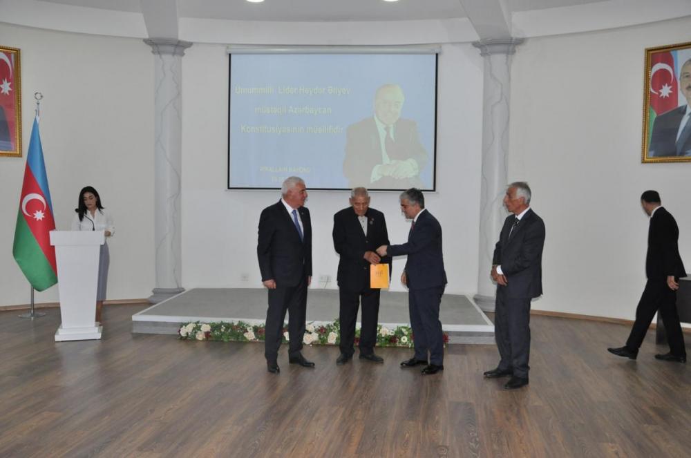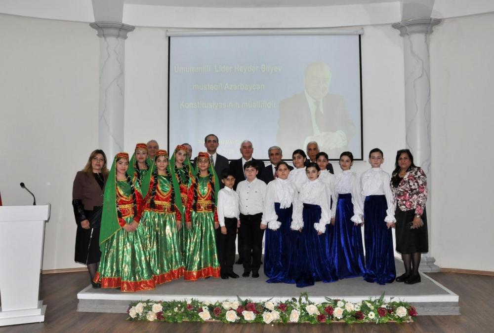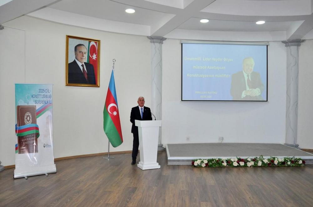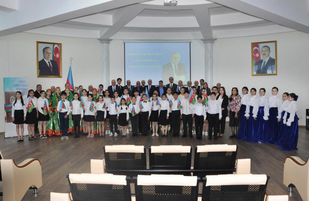 Tədbirdə ilk olaraq, Bakı Şəhər İcra Hakimiyyəti başçısı Aparatının şöbə müdiri Elmin İmanov çıxış edərək, qeyd edib ki, Azərbaycan Konstitusiyası müasir dövlətçiliyimizin hüquqi dayağıdır. Bu sənədin hazırlanması və qəbul prosesi bilavasitə Heydər Əliyevin rəhbərliyi ilə həyata keçirilib və bu, onun dövlətçilik tariximizdəki əvəzsiz xidmətlərinin göstəricisidir. O əlavə edib ki, Konstitusiyanın hüquqi mexanizmləri bu gün də ölkədə sabitliyin, vətəndaş hüquq və azadlıqlarının qorunmasının əsasını təşkil edir.