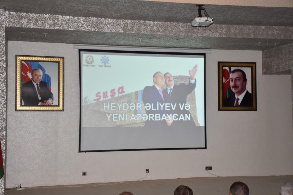 Tədbirdə çıxışlar başlamamışdan öncə Dövlət Himni səsləndirilib, Ulu Öndər Heydər Əliyevin, eləcə də şəhidlərimizin əziz xatirələri bir dəqiqəlik sükutla yad edilib. Daha sonra Ulu Öndərin şərəfli ömür yolu və fəaliyyətini əks etdirən sənədli film nümayiş olunub. Çıxış edənlər Heydər Əliyevin Azərbaycan dövlətçiliyinin formalaşmasında və möhkəmlənməsindəki müstəsna rolundan, onun uzaqgörən və zəngin siyasi irsindən, müasir müstəqil Azərbaycanın qurucusu kimi tarixi xidmətlərindən ətraflı danışıblar. Qeyd edilib ki, Heydər Əliyev siyasi kursunun nəticəsi olaraq Azərbaycanın bu gün regionda aparıcı və dinamik inkişaf edən bir dövlətə çevrilib, əldə olunan uğurların məhz bu yolun davamı olduğu diqqətə çatdırılıb. Ulu Öndərin siyasi xəttini uğurla davam etdirən Azərbaycan Respublikasının Prezidenti cənab İlham Əliyevin rəhbərliyi ilə ölkəmizin yeni zirvələrə doğru inamla addımladığı və bütün istiqamətlərdə mühüm nailiyyətlərin qazanıldığı bildirilib. Tədbirdə həmçinin YAP sıralarına yeni üzv olmuş gənclərə partiya vəsiqələri təqdim edilib. Sonda Yeni Azərbaycan Partiyasının himni səsləndirilib.