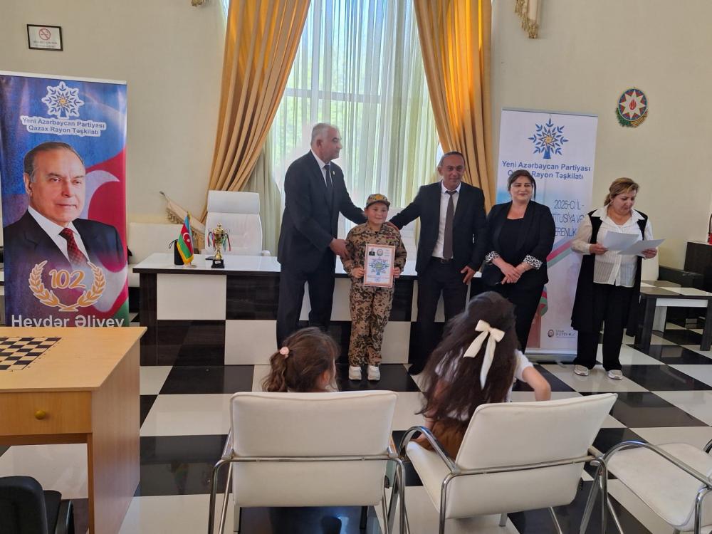 Ümummilli Lider Heydər Əliyevin anadan olmasının 102-ci ildönümü ilə əlaqədar YAP Qazax rayon təşkilatı və Qazax - Tovuz Regional Təhsil İdarəsinin Qazax sektorunun tabeçiliyində fəaliyyət göstərən Uşaq - Gənclər İdman Şahmat Məktəbinin birgə təşkilatçılığı ilə aşağı yaş qrupu üzrə futbol, şahmat və dama idman növləri üzrə yarışların final mərhələsi keçirildi. Yarışlar may ayının 9 -da başa çatdı.